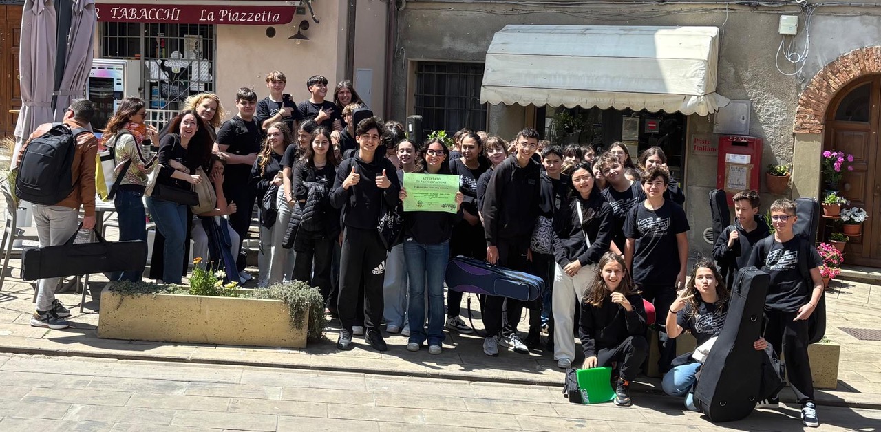 A Guardistallo (PI), nel delizioso teatro Marchionneschi, si è aperta la 3° Rassegna Toscana Musica, che nell’arco di 3 giorni presenterà le performance delle scuole ad Indirizzo Musicale della Toscana. L’onore di aprire la manifestazione , patrocinata dall’USR Toscana di Firenze, è stato dato al nostro Comprensivo Pertini, che con l’orchestra dell’Indirizzo Musicale (classi 2B e 3B) ha allietato il folto pubblico con un anticipo della loro programmazione di fine anno. Sono stati eseguiti 8 brani di generi diversi : Stand by me – Hit the rod jack- Waka waka – Perfect- Every breath you take – Mrs. Robinson – Black or white e The final countdown, che il pubblico in sala ha gradito molto, intervallando l’esecuzione con scroscianti applausi . Una bellissima mattinata di musica, incontro, amicizia. Un grande ringraziamento a tutti i Docenti del musicale, con la Direttrice Chiara Galliozzi ed i docenti Bigio, Carrari, Mazzeo e Sodano.