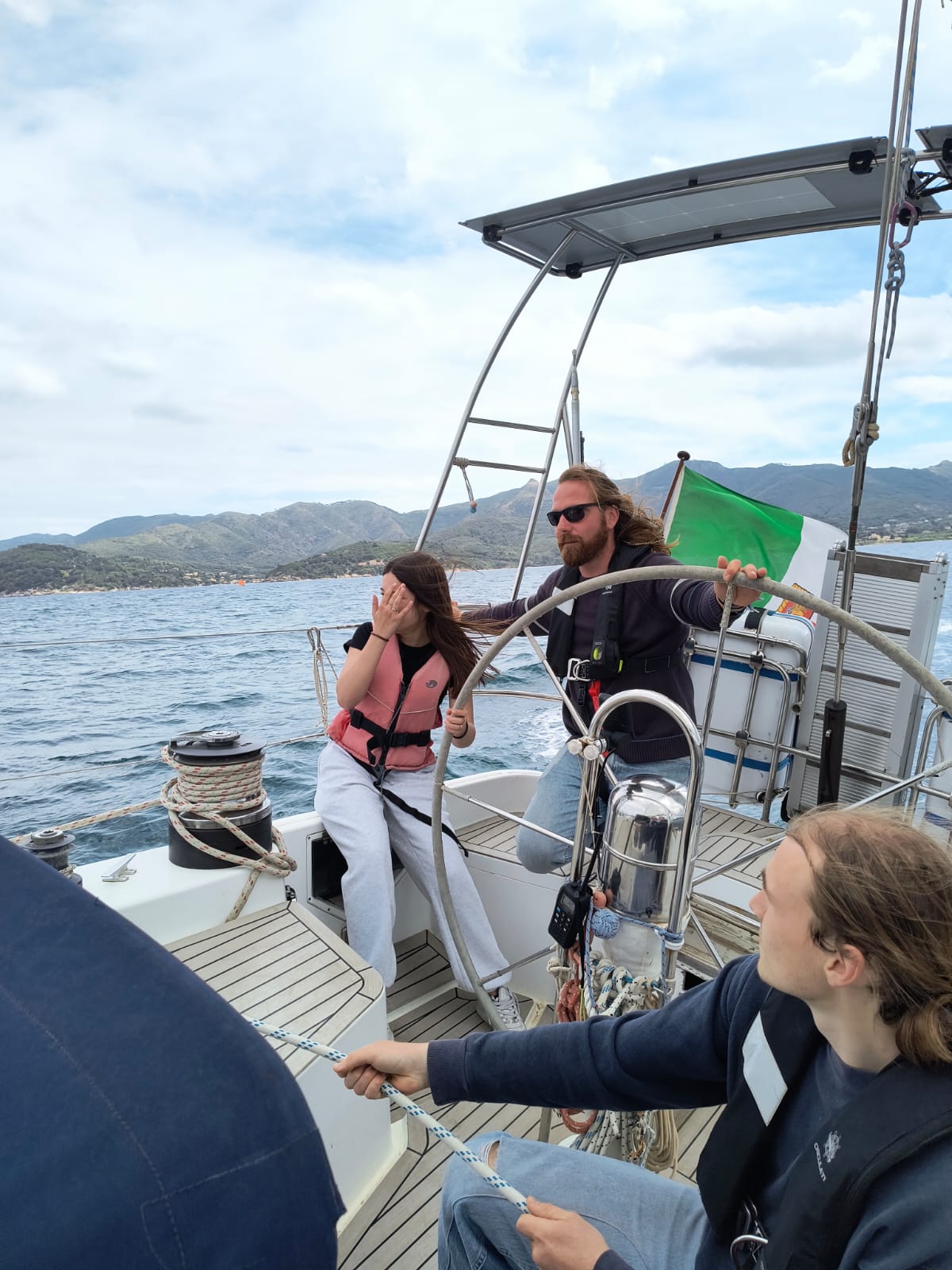 Eolo ci ha graziato! Dopo settimane di vento forte e di pioggia a vento, siamo finalmente riusciti a uscire in barca a vela intanto con gli studenti e le studentesse della prima GRAF dell’ITCG Cerboni.