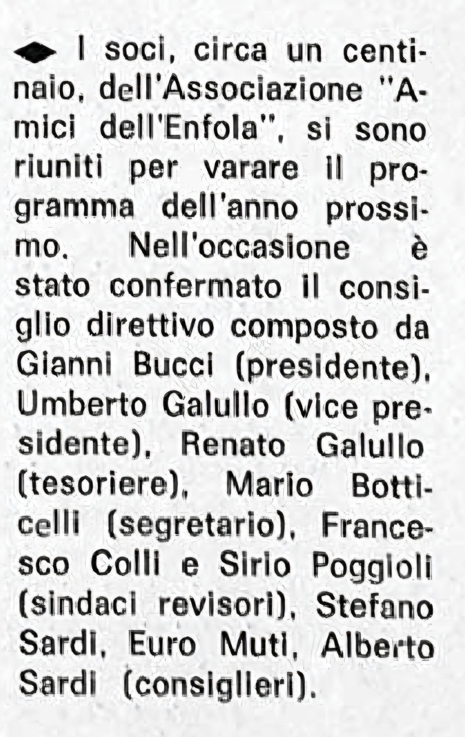 Ed ogni volta che purtroppo, col passare del tempo, qualche amico andava via, era come perdere un fratello. Ma gli Amici dell’Enfola ne tenevano comunque sempre viva la memoria con i loro racconti e dedicando feste e trofei a chi purtroppo non c’era più, quello era il loro modo per non dimenticare chi era stato importante.