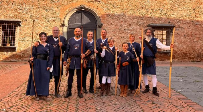 Nel cuore medievale del borgo di Certaldo infatti, domenica 11 maggio, si è svolta la terza gara di Campionato Nazionale L.A.M., alla quale ha partecipato un nutrito gruppo di arcieri del Grande Falco. La gara si è distinta per novità e fantasia, che hanno contribuito a rendere il percorso divertente e di spirito competitivo. Tutto questo sommato allo splendido meteo, all’ospitalità e al buonissimo cibo che ci hanno accolto ha trasformato lo scorrere del tempo lento e piacevole. Non sono mancate le soddisfazioni: i nostri ragazzi Melissa ed Edoardo Ciomei si sono aggiudicati rispettivamente il terzo posto Under 10 e il secondo Under 14, accompagnati dai genitori Marco e Nina alla loro prima competizione, mentre Natalia Cignoni, a seguito di uno spareggio, ha portato a casa un bel terzo posto nella categoria DAS. Senza dimenticare il contributo di altri nostri falchi come William Cignoni, Alfonso Licalzi, Sara Pupeschi e del nostro mitico Hass Jens. Non vediamo l’ora di tornare il prossimo anno!