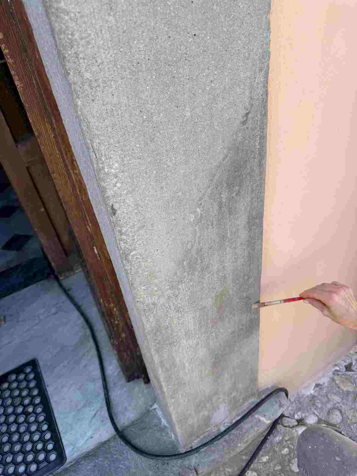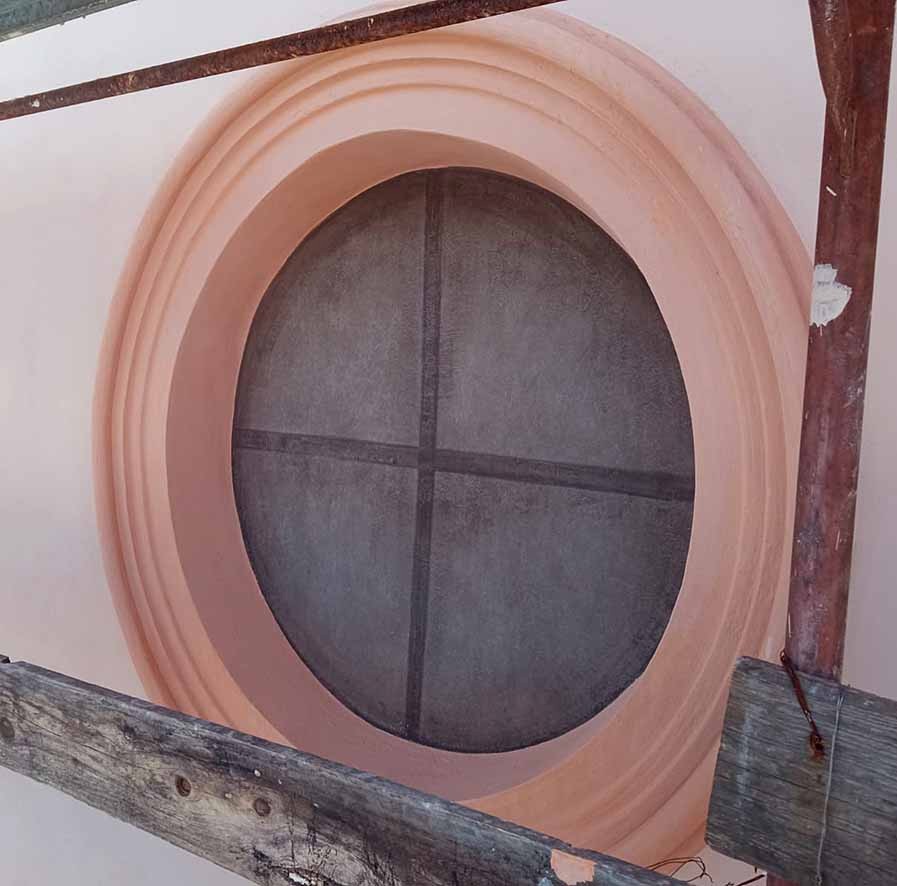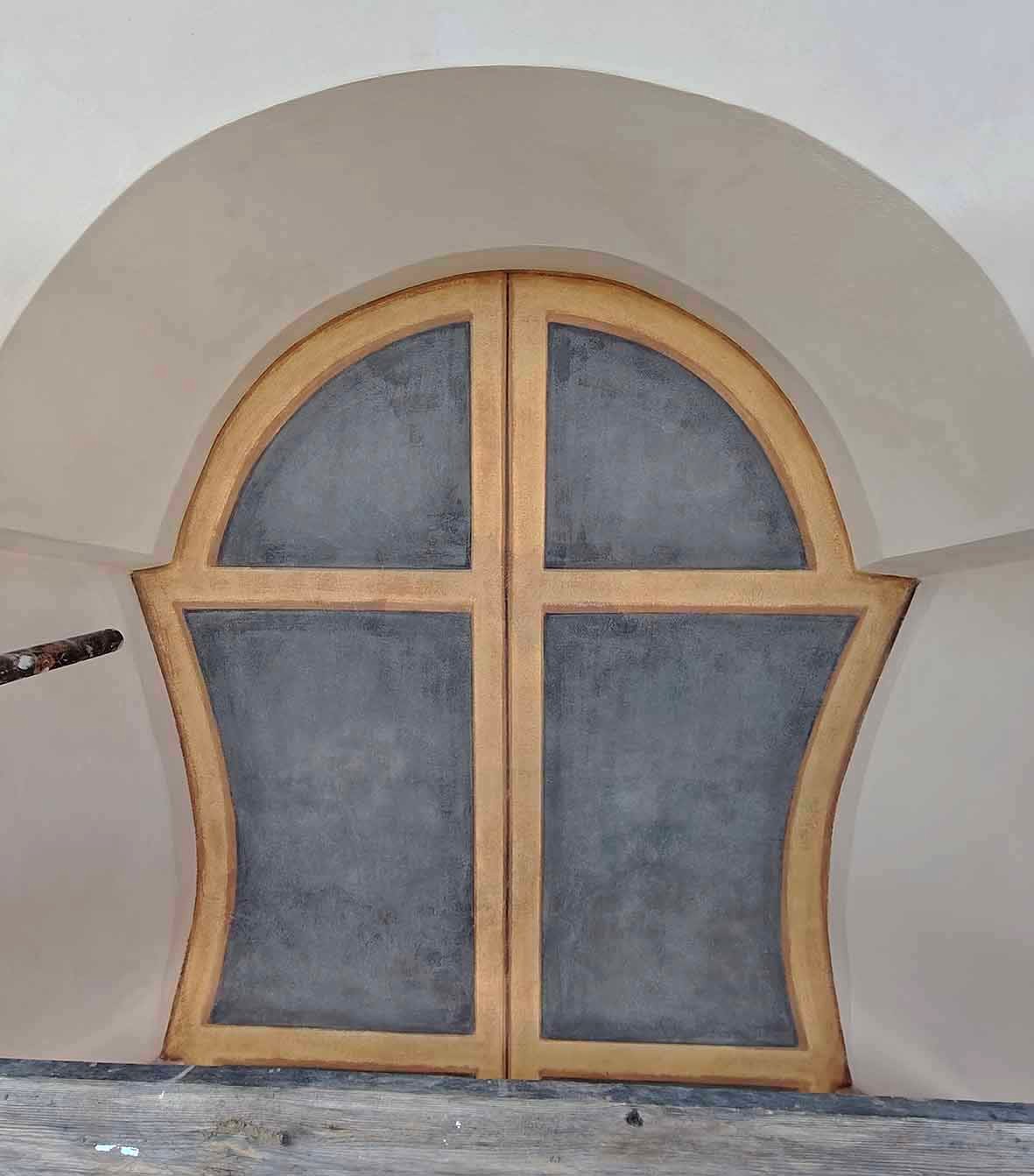 Infine, sono stati restaurati i tre portali in pietra serena presenti in facciata mediante una accurata pulitura e lavaggio con prodotti specifici, integrazione delle parti mancanti, stuccatura e patinatura finale. Le integrazioni e le stuccature sono state effettuate con malta specifica per la rigenerazione del materiale lapideo e restaurate cromaticamente tramite delle velature sensibilizzate con terre ed ossidi maturali legati con una resina specifica per esterno.