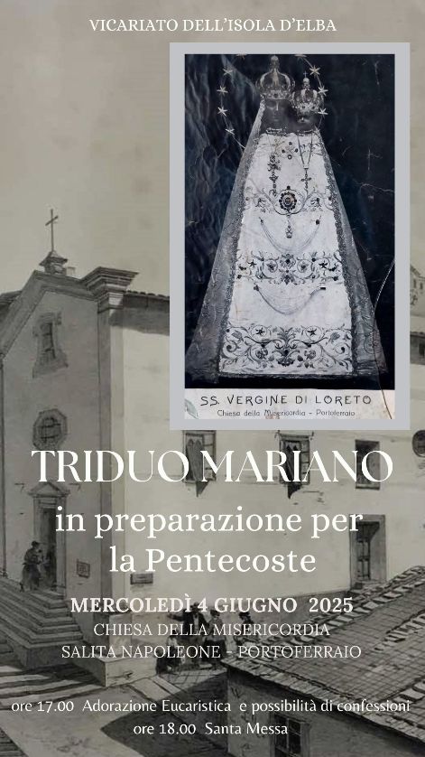 “Il Vicariato dell’Elba celebrerà questa prima giornata del Triduo Mariano a Portoferraio, nella chiesa della Misericordia del centro storico”, spiega Don Kevin. “Alle 17 si terrà l’Adorazione Eucaristica, seguita dalla Santa Messa alle 18. Durante l’ora di adorazione, sarà possibile confessarsi e in questo giorno non si terrà la messa al Duomo e a San Giuseppe”.