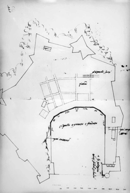 1552, 27 ottobre . Bastiano Campana scrive: “… e subito e s’è messo mano affar el tetto salvaticho con muratori delle galee e si fa dalla becheria inverso la linghuella lungo per quella cortina vecchia di muraglia che non impedisce e disegni dati e il pocho muro vi era si fa atterra che sarà alto braccia 3 e ½ in gronda e da l’altra banda ci serviremo del muro vecchio v’è e si farà capace per tutti i bisogni delle galee e vi stia la freghata di rispetto sotto.”