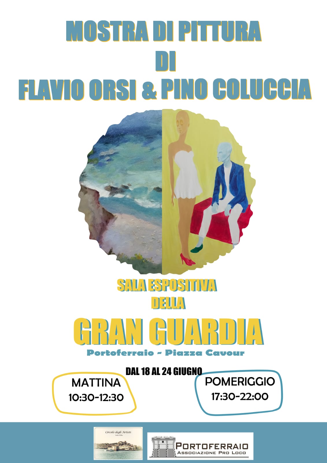 Il Circolo degli Artisti e la Pro loco di Portoferraio organizzano la mostra di pittura di Flavio Orsi e Pino Coluccia, presso la Sala della Gran Guardia, in Piazza Cavour.