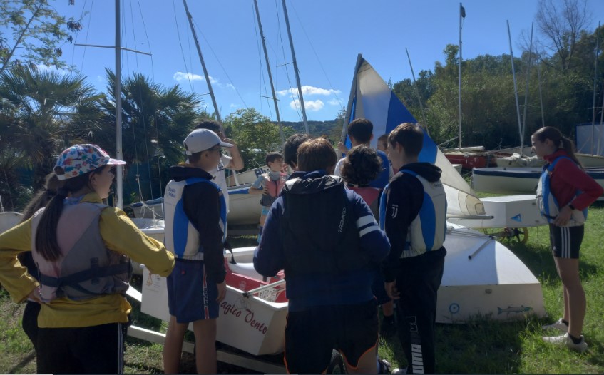 Un progetto educativo sulla vela per la scuola media sviluppato di concerto con la Lega Navale Italiana di Portoferraio, nell’ambito del quale si lasciano i banchi di scuola per andare alla scuola di vela e imparare – divertendosi – fra gare di nodi e una sorta di giochi senza frontiere in acqua coordinati dal nostro istruttore LNI FIV Fabrizio Cazzorla alla base nautica di San Giovanni.