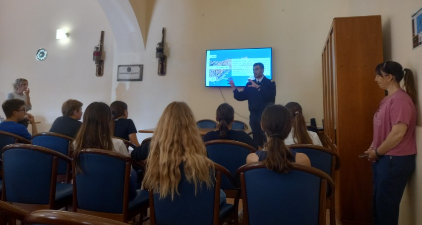 I ragazzi e le ragazze sono stati accolti in sala riunioni dal Capitano Bonasera, con il quale si è svolta la prima parte del programma sulla storia della Capitaneria e con alcune specifiche informazioni sul porto di Portoferraio.