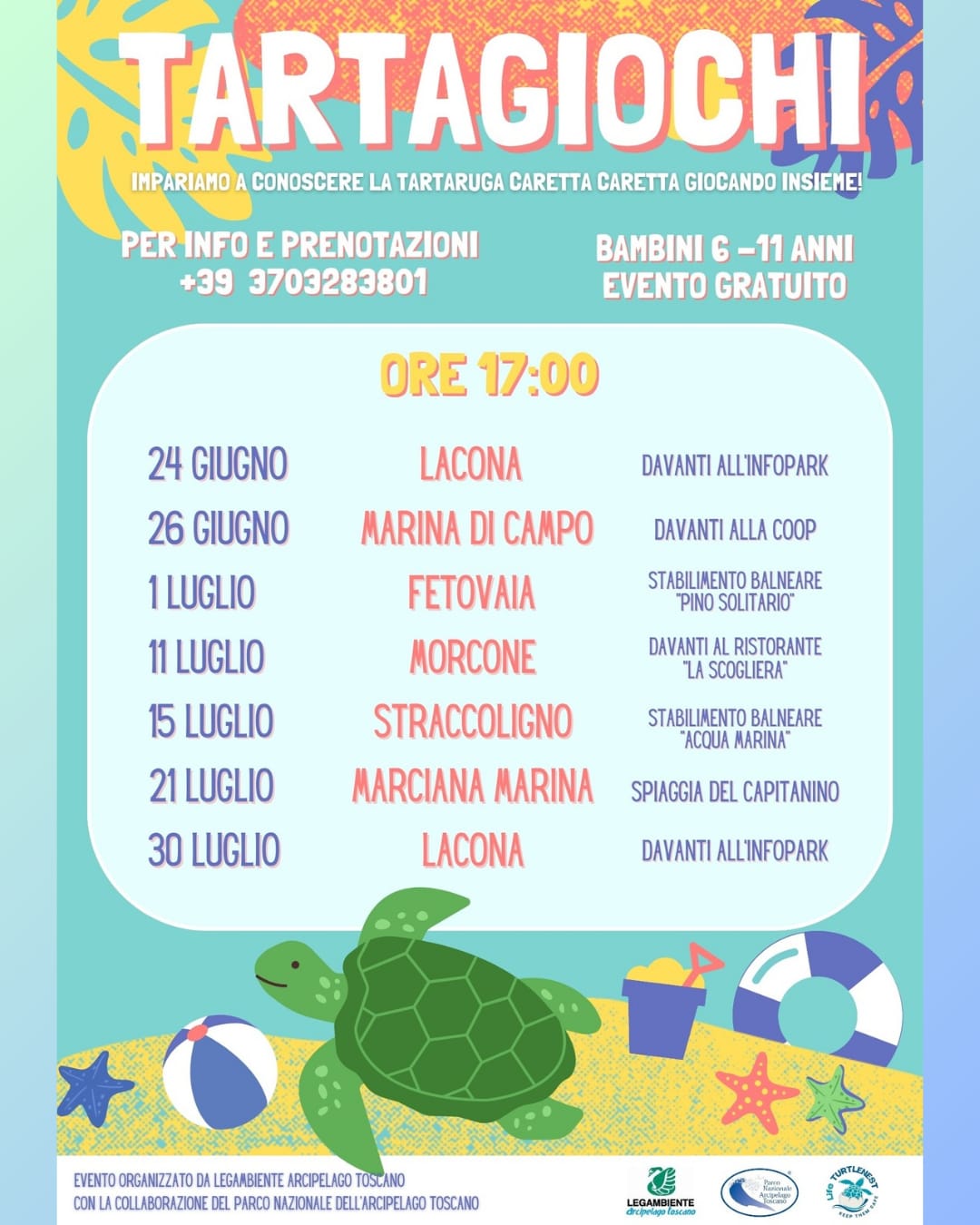 Legambiente Arcipelago Toscano, con il Patrocinio del Parco Nazionale dell’Arcipelago Toscano, propone un’altra estate di divertimento e scoperta con i Tartagiochi, eventi gratuiti per bambini 6-11 anni!