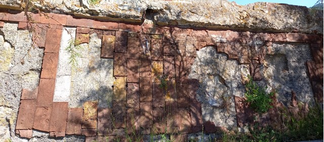 (Portoferraio. Linguella. Ruderi del camin di ronda adagiati abbandonati sulla spiaggetta. Pavimentazione di mattoni in cotto)