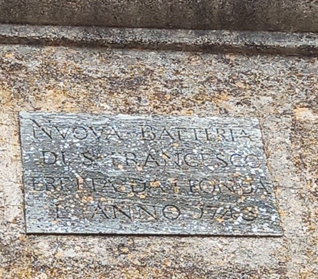 (Portoferraio. Linguella.Sotto il cordòlo,epigrafe marmorea sulla cortina del bastione di San Francesco o batteria di San Francesco)