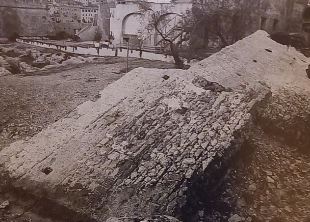 (Portoferraio. Linguella. Ruderi del camin di ronda adagiati sulla spiaggetta .Pavimentazione di mattoni in cotto)