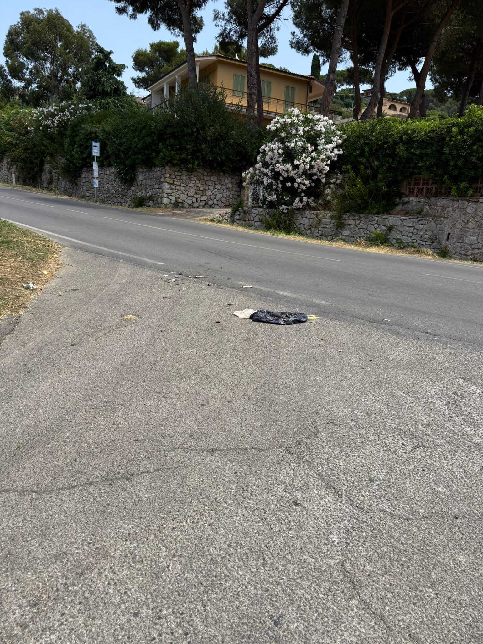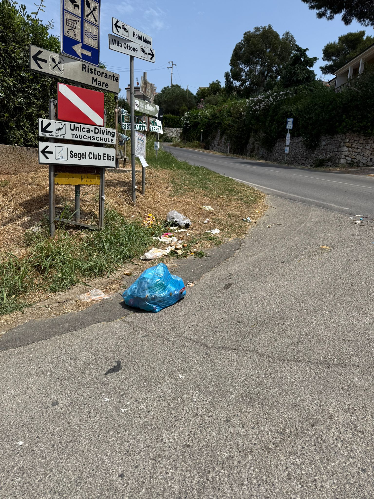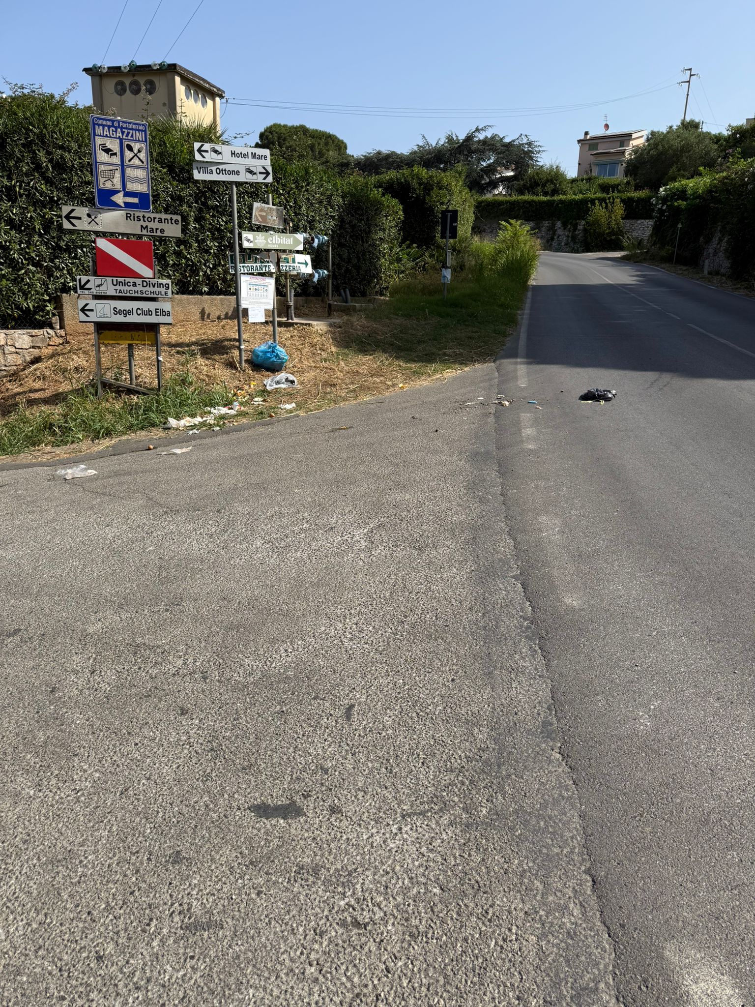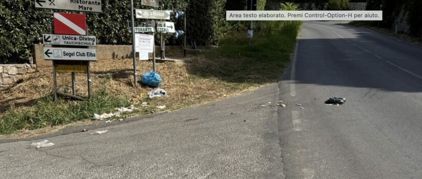 I turisti presenti all’Isola d’Elba in questo fine giugno, hanno da fotografare ( e lo fanno) non solo le bellezze isolane ma anche l’inciviltà di chi se ne frega delle regole e del vivere comune. Le foto che allego, sono la prova tangibile di quello che racconto. Siamo sulla provinciale che porta la bivio del Volterraio all’altezza di Magazzini, e per terra si trovano sacchetti di spazzatura abbandonati chiaramente strappati dai gabbiani (o cinghiali), ma di pulire non se ne parla. Ora coloro che lasciano i sacchetti per strada sono degli incivili e andrebbero quanto meno multati, ma chi deve pulire è completamente assente. Allora non sarebbe meglio cambiare sistema di raccolta? L’Elba ha moltissime case estive sparse nel territorio difficili a volte da raggiungere, mi domando: sarebbe possibile per esempio mettere dei cassonetti chiusi che funzionano con una tessera? Fa schifo buttare sacchetti e cestini in strada, i topi, i gabbiani e i cinghiali ringraziano.
