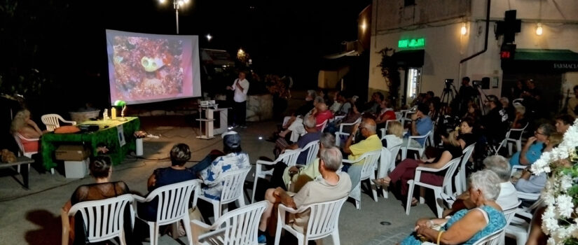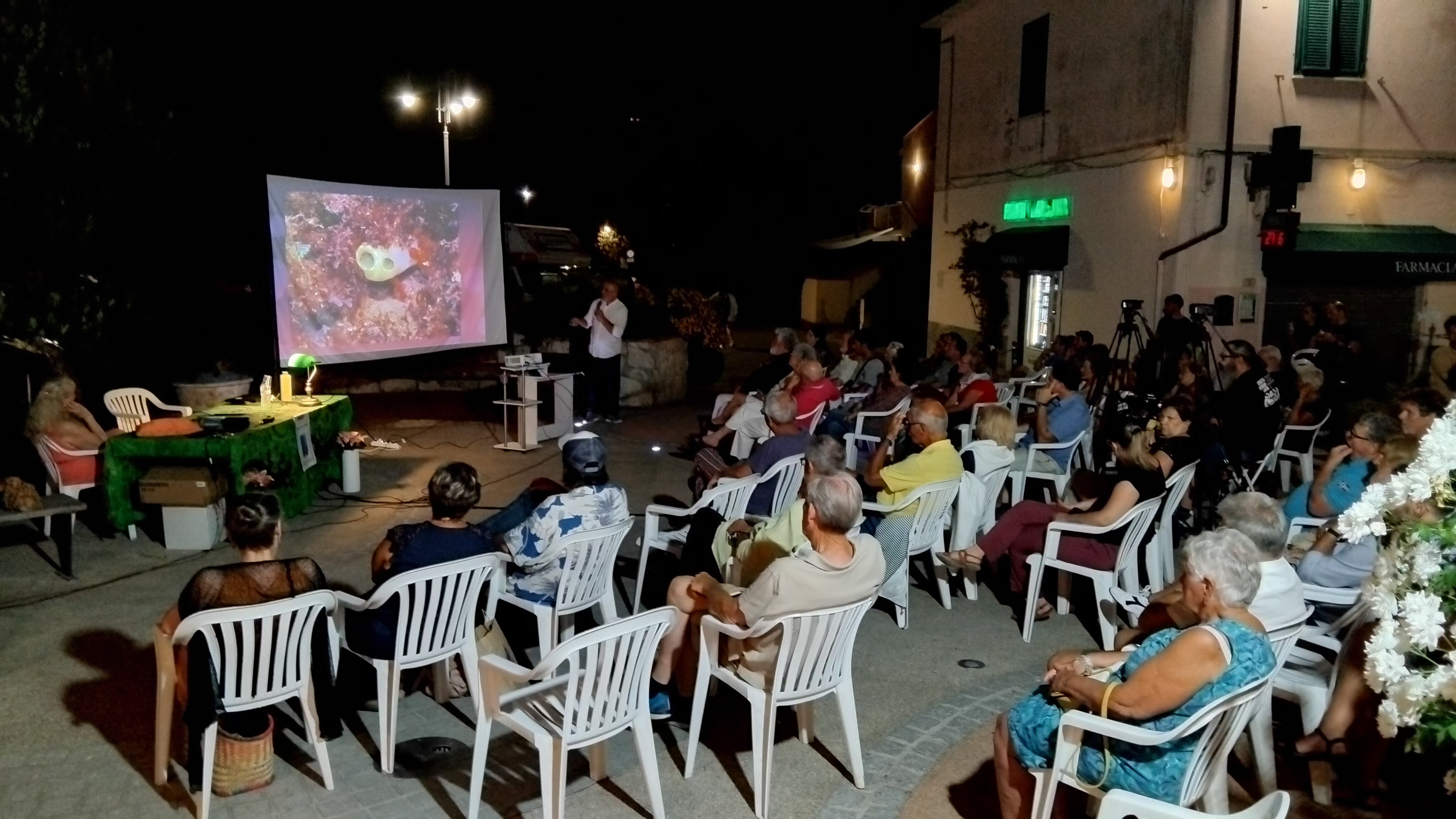 Tutte occupate le 50 sedute messe a disposizione dall’Associazione Culturale Procchio Napoleonica per la serata dedicata alla scienza e piu’ in particolare al professore ed ingegnere Marco Sartore, operante presso l’Elba Tech di Marciana (microelettronica industriale) e valente sub che ieri sera ha presentato il suo libro Mirabilia Maris, un condensato di vita marina dell’Elba con una visione nuova, geometrica e matematica.