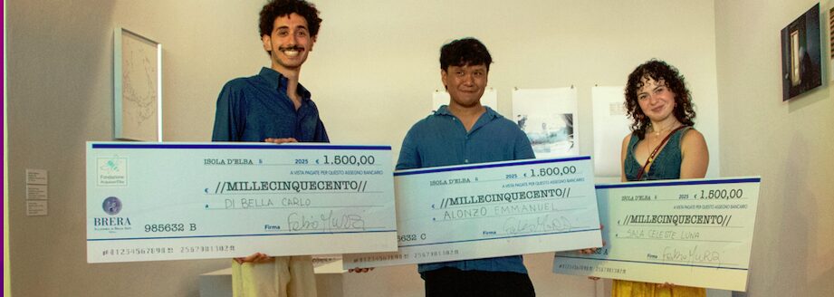 La mostra “Comunità Mediterranee” rappresenta il culmine della 9a edizione del Premio Arte Acqua dell’Elba, nato con l’obiettivo di far emergere nuovi talenti fra i migliori allievi dell’Accademia di Belle Arti di Brera. Le opere candidate al riconoscimento hanno attinto ispirazione dai principali valori identitari della manifattura elbana, con forti richiami all’esperienza sensoriale e olfattiva che offre il mare isolano. Sono venti i talentuosi artisti in mostra che, con opere pittoriche, plastiche, fotografiche ed extra-mediali, hanno interpretato l’essenza e la ricchezza del patrimonio marino e costiero delle comunità che abitano il Mar Mediterraneo. Le opere giudicate sono state prodotte attraverso il laboratorio didattico, di ricerca e produzione artistica condotto nei mesi precedenti a Brera e finalizzato alla costruzione della mostra. Durante la serata sono stati annunciati i tre vincitori: Emmanuel Alonzo con Biophilia (2025), opera serigrafica in carta, gomma e legno che riflette sulle somiglianze tra gli elementi naturali, seppure di ambienti diversi come quello acquatico e quello terrestre, in una ripetizione che sembra suggerire una visione unitaria della natura e del mondo; Carlo Di Bella con Sillabando: Ta-bis-ca, dittico fotografico attraverso il quale l’artista torna in Calabria, a ripercorrere colori e luoghi della casa natale della bisnonna; Celeste Luna Sala con l’installazione Il mio bisnonno era pescatore (2025) che, combinando carta patinata, foto d’archivio, stampa laser e plexiglass conduce in un viaggio tra ricordi di famiglia e racconti dall’odore di salsedine. La giuria ha assegnato inoltre cinque Menzioni Speciali alle opere di: Claudia Chisari, che con L’impagliata (2025) assembla stoviglie e cristalli nella riproduzione di una tipica tradizione faentina rivolta alle donne partorienti; Matilde Sbrozi, che con l’opera Nido (2025) sovrappone carte da restauro ed elementi in ferro con l’intenzione di consegnare un impatto visivo composto da stratificazioni, così come viene composta la struttura di un nido; Giulia Senn, che in Due ulivi (2025) propone una narrazione ottenuta con acquaforte e inchiostro calcografico incisi su lastre di zinco; Angela Trebeschi, che con Il tappeto della terra (2025) riproduce con aghi di pino, fili di cotone, telaio di legno e chiodi una stratificazione organica che funge da tappeto capace di regolare il fluire dell’acqua e il ph della terra; Andrea Zanin che, in Classificazione delle cascine (2025), tratteggia con inchiostro di china e grafite una sorta di autoritratto su tre quaderni formato A3. Le opere vincitrici, insieme a quelle degli altri finalisti, saranno esposte fino al 5 luglio presso il Centro per le Arti Visive Telemaco Signorini di Portoferraio (entrata libera), dando così ai visitatori l’opportunità di immergersi in un viaggio visivo che esplora temi come la sostenibilità, le bellezze naturali dell’ecosistema marino e l’interazione tra uomo, mare e natura.