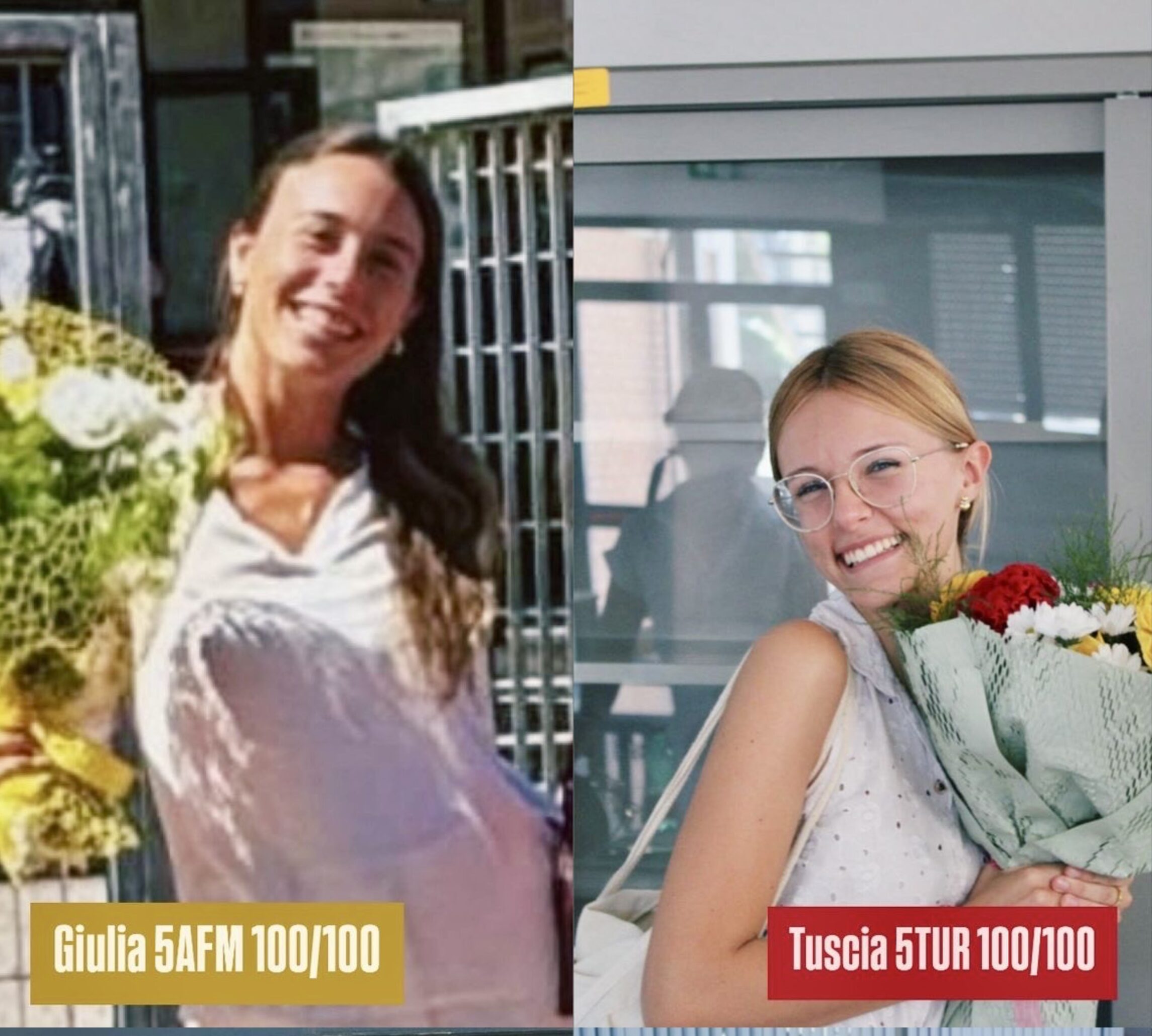 In particolare, la Dirigente desidera esprimere un plauso speciale a coloro che si sono distinte per l’eccellenza dei risultati conseguiti all’Esame di Stato: Giulia Verdura della classe 5AFM e Vergari Tuscia Valeria della classe 5TUR, che hanno raggiunto il punteggio massimo di 100/100.