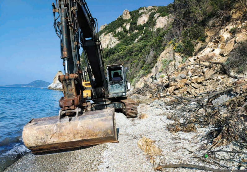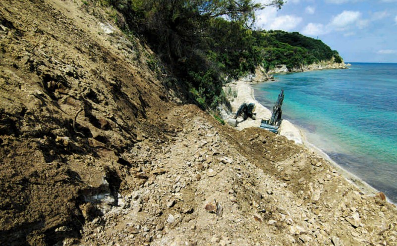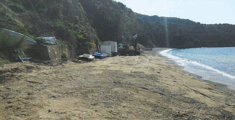 I lavori, progettati dal comune di Portoferraio, diretti dall’ingegner Luciano Fantoni e finanziati dalla Regione Toscana per un importo di oltre 85mila euro, erano iniziati nei primi giorni di giugno, usando una tecnica molto particolare per l’accesso sull’arenile: i due escavatori utilizzati dalla ditta appaltatrice sono infatti arrivati via mare, trasportati da un pontone e fatti sbarcare direttamente sulla spiaggia.