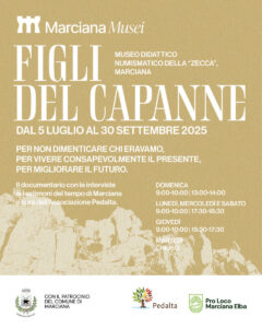 All’interno del piccolo museo marcianese si può vedere il documentario FIGLI DEL CAPANNE, prodotto dall’associazione Pedalta, che ci mostra una serie di interviste ai testimoni del tempo di Marciana, “marcianesi intervistati da marcianesi” con racconti di vita autentici e preziosi in “una sorta di atavico rito di passaggio”. Fino al 30 settembre 2025.