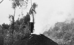 Le foto in bianco e nero di Uta Karl Mazzei vi fanno entrare in un mondo altro, di fuoco e di nuvole di fumo, di legna e di invisibile carbone. Sono le immagini della mostra LA CARBONAIA DI ROBERTO, scattate nel 1980, immagini che ci mostrano l’antico mestiere del carbonaio, nello specifico, di Roberto Mazzei che è stato uno degli ultimi a fare il carbone con metodi tradizionali utilizzando il leccio, la scopa e il corbezzolo.