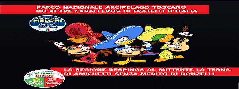 ll governo del merito vuole imporre all’Arcipelago toscano degli immeritevoli, il Partito che tuonava contro l’amichettismo vuole imporre ai sindaci una terna di amici e camerati, la sovranista Giorgia Meloni vuole imporre alla comunità del Parco una terna di continentali senza curriculum in alternativa alla terna di candidati (di destra) che avevano proposto i sindaci e che il curriculum ce l’ha.