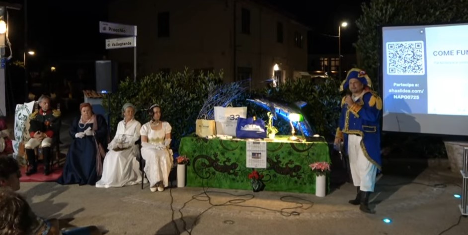 Non sono state sufficienti le 80 sedute (il massimo possibile in Piazzetta dei Delfini) per contenere il gran pubblico intervenuto ad un “must” dell’estate procchiese e cioè il Quiz Napoleonico, un format ideato dall’Associazione Culturale Procchio Napoleonica e sempre di alto gradimento tra il pubblico.
