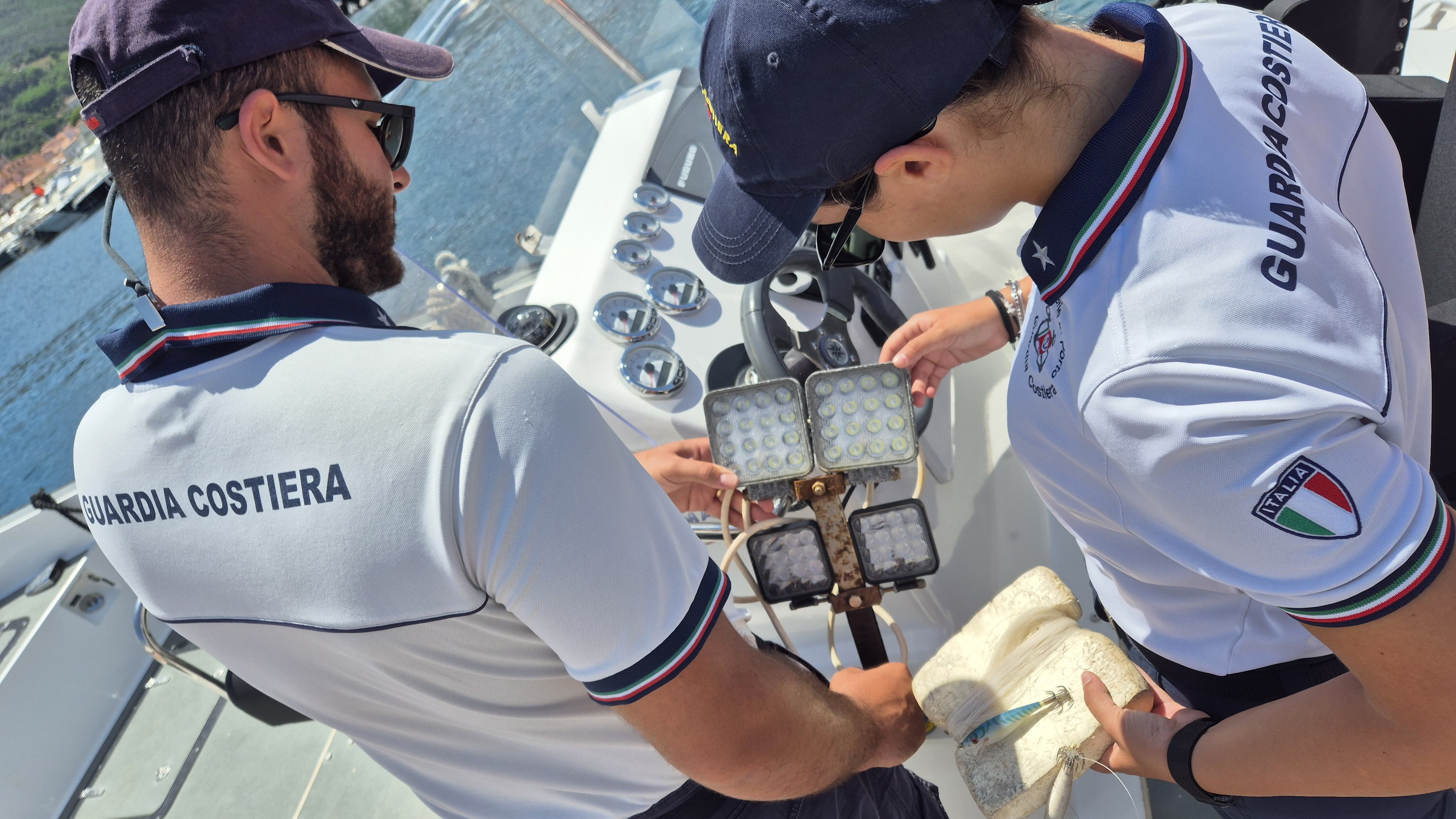 Una battuta di pesca notturna nel golfo di Marciana Marina è costata cara ad un pescatore sportivo elbano, fermato la notte scorsa dalla Guardia Costiera. Dopo giorni di appostamenti e monitoraggio, effettuati anche a seguito di segnalazioni pervenute da Legambiente, il personale della Guardia Costiera è intervenuto all’alba, sorprendendo un noto pescatore locale mentre praticava la pesca al totano con attrezzi irregolari. L’uomo, a bordo di una piccola imbarcazione a motore di circa 6 metri, stava utilizzando una potente lampada a led ed esche artificiali per catturare calamari in orario notturno, un metodo non consentito.