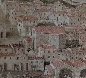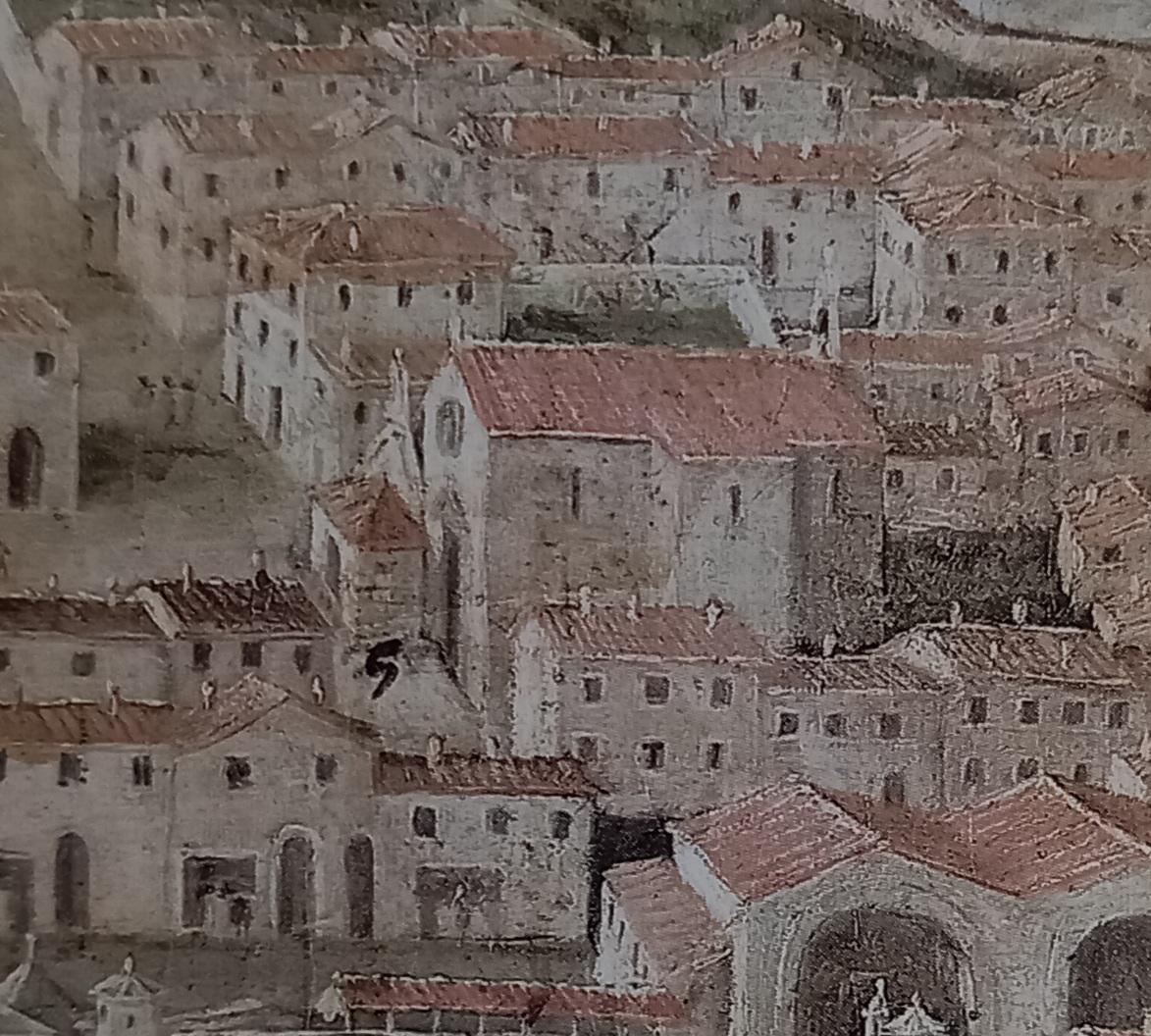 ( PARTICOLARE del dipinto olio su tela ‘Veduta di Portoferraio ”1705. Anonimo.
