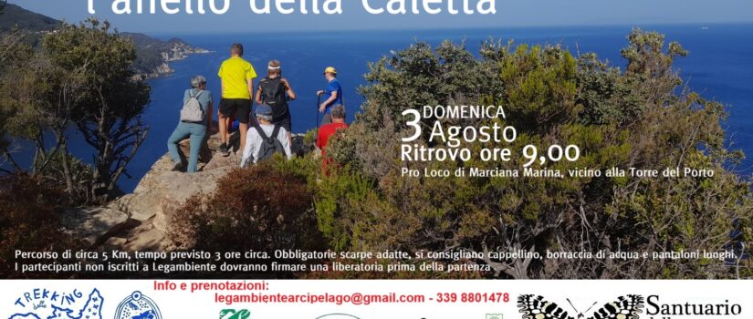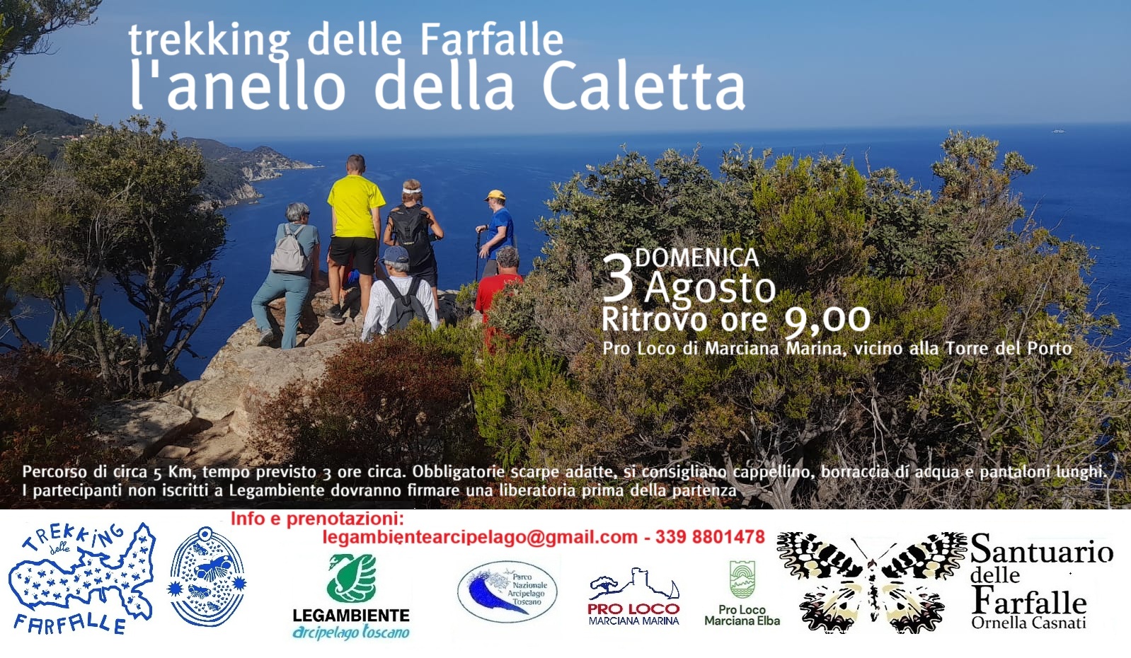 Dopo i successi di giugno e luglio, i trekking extra urbani delle farfalle organizzati come sempre da Legambiente con Parco Nazionale Arcipelago Toscano e Pro Loco di Marciana Marina e Marciana, ad agosto iniziano con il circuito costiero e collinare ad anello della Caletta, un percorso facile con qualche tratto impegnativo. Il ritrovo è domenica 3 agosto alle ore 9,00 alla Pro Loco di Marciana Marina, vicino alla Torre del Porto, da dove si risale il sentiero che dalla spiaggia della Finiccia porta alla Ripa in mezzo a una lussureggiante macchia mediterranea e, raggiunta la strada asfaltata si fa una breve deviazione sul balcone naturale della Punta della Madonne, a picco sul mare profondo e trasparente di Ripa Barata con un panorama che guarda la Corsica, Sant’Andrea, Capraia Gorgona, il continente e tutta la costa nord dell’Elba. Poi si prosegue in discesa fino al bivio dell’antica strada per la Cala, ma lo si abbandona non appena raggiunto un ampio e agevole stradone sterrato che si percorre agevolmente in salita, fino a raggiungere la Caletta, che si sporge a picco sulle antiche vigne e la costa e un mare blu e sconfinato. Da qui si prende un sentiero nascosto che, in pochi metri, permettere di raggiungere, tra boschi di lecci e macchia mediterranea, ombra e sole e panorami inusuali sul mare e la montagna elbana, il crinale della Ripa, da dove si ridiscende velocemente, attraversando coltivi abbandonati, boschi e pinete.