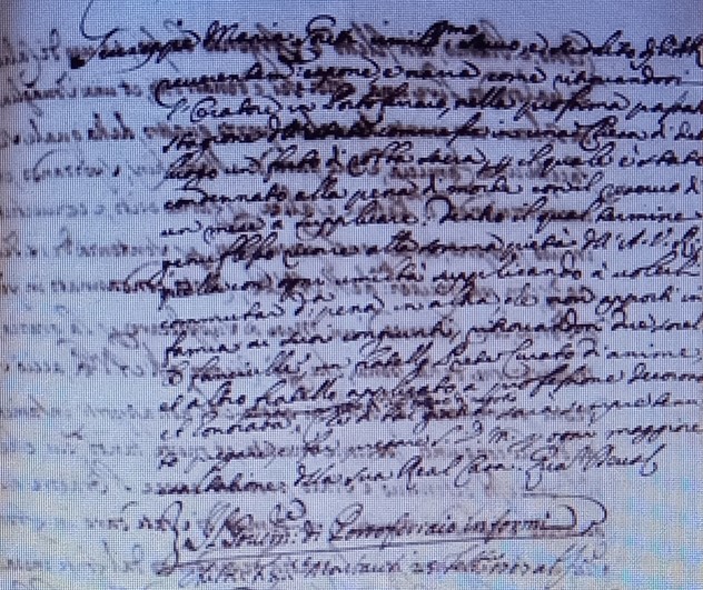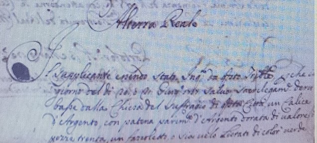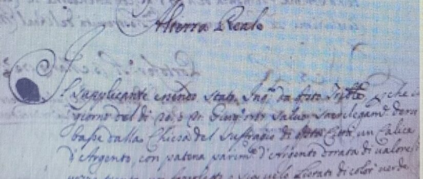 Il supplicante essendo stato inquisito da questo Tribunale perché il giorno il giorno del dì 20 o 21 Gennaio 1707 sacrilegamente derubava dalla Chiesa del Suffragio di questa Città un calice d’argento con patena parimenti d’argento dorata di valore pezze trenta ,un fazzoletto o sia velo listato di color verde rosso e bianco con filetto d’argento basso, ad uso di calice di valore di Lire una ,soldi sei, e denari otto et una tovaglia d’altare con punta di valore pezze quattro,della quale si facesse una camicia e due paia di manichini spezzando et accartocciando detta patena e calice per farne esito e convertirlo in uso proprio come suol presumersi per sentenza de 18 febbraio 1707/8 con partecipazione dell’A.V.R. restò condannato in pena di forca con riservo d’un mese a supplicare per la grazia o moderazione della pena ,che perciò ricorre all’A.V.R. acciò si degni permutarli la pena in altra che non apporti infamia ai di lui congiunti ,persone onorate, et oneste, tanto più che nel processo defensivo è stato provato essere l’Oratore alquanto scemo di mente e nel tempi di estate dare in frenesie ,qual gratia dependendo dal fonte inesauribile della somma clemenza dell’A.V.Reale ;con attenderne le regie risoluzioni le bacio ossequiamente l’estremità del Real Mano