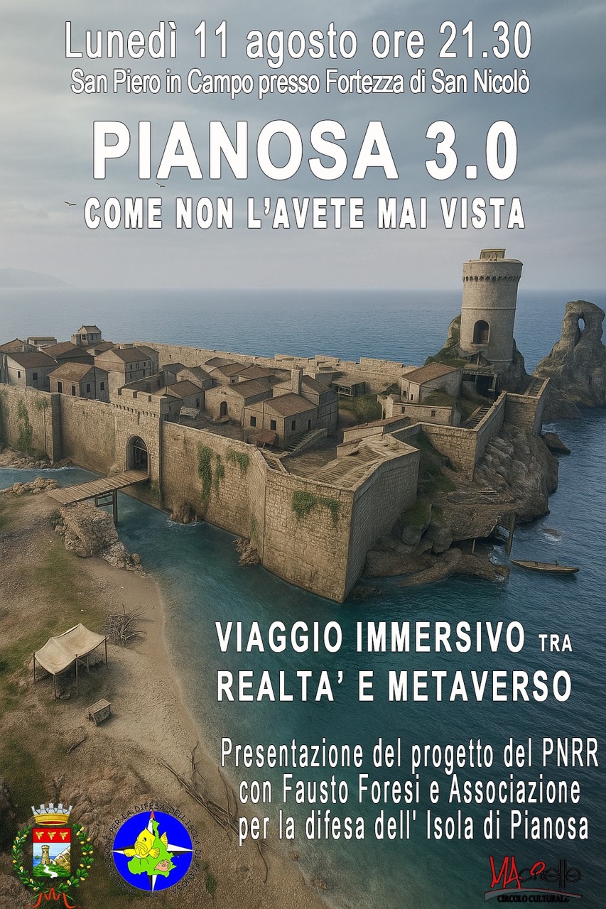 Il Circolo Culturale Le Macinelle ringrazia di cuore l’Associazione per la difesa dell’Isola di Pianosa, ODV per la grande disponibilità nel proporre due importanti serate interamente dedicate all’antica Planasia. Il primo appuntamento da segnare in agenda è quello del 5 agosto alle 21.30, presso la Fortezza di San Niccolò a San Piero in Campo, per la presentazione del libro “L’isola di Pianosa. La storia” di Ilaria Monti e Fausto Foresi. Entrambi gli autori saranno presenti per raccontare ed illustrare al pubblico, attraverso parole ed immagini, la storia dell’isola dalle epoche protostoriche sino ai giorni nostri, in un viaggio nel tempo reso ancora più attraente grazie alla scoperta di nuovi documenti d’archivio e nuove ricerche, che rendono questo libro una preziosa fonte di curiosità e notizie, arricchito anche da riproduzioni documentarie e da QR code, che rimandano a video esplicativi. Si tratta di una pubblicazione in grado di soddisfare sia gli studiosi che i comuni lettori, per la puntualità storica e per il fascino delle vicende legate a battaglie navali e incursioni piratesche. Ilaria Monti, storica e ricercatrice, ha già pubblicato diversi libri sull’isola piatta attraverso i secoli e i personaggi che l’hanno abitata o frequentata. . Fausto Foresi è un pianosino doc, un appassionato “Foresi di Pianosa”, sempre attivo nella Associazione per la Difesa dell’Isola di Pianosa, ODV. Ma non meno interessante sarà l’incontro dell’11 agosto, sempre nel chiostro di San Niccolò e sempre alle 21.30, dedicato alla illustrazione di un grande progetto, ancora da completare ma già in fase di realizzazione, a cura della medesima Associazione e reso possibile dal PNRR. Ci immergeremo in una dimensione multimediale per un altro viaggio tra la realtà e il metaverso: “Pianosa 3.0 Come non l’avete mai vista”. Avremo di nuovo con noi Ilaria Monti e Fausto Foresi, il quale è soprattutto coinvolto in questa nuova esperienza a favore della conoscenza della sua isola. Per chi ne avrà la possibilità, sarà di grande interesse poter partecipare ad entrambe le serate e comunque, già riuscire ad essere presenti ad uno degli appuntamenti regalerà molte sorprese ed emozioni! Un particolare ringraziamento va anche all’Edicola Elbana Show per la diretta del 5 agosto, che permetterà di seguire la serata a chi si trova lontano dall’Elba.