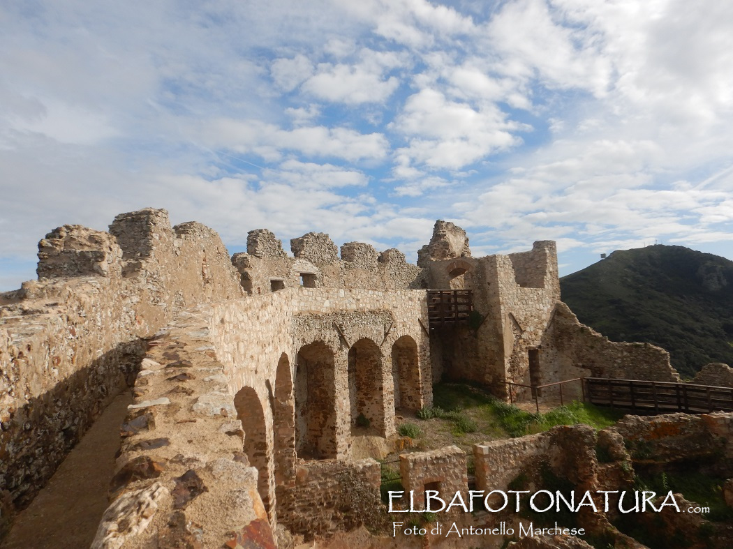 Molto è già stato scritto sul Volterraio, la straordinaria fortezza svettante su un monte dalla particolare conformazione che a sua volta già appare come una torre di roccia. Per la posizione dominante del rilievo e per le stesse caratteristiche geologiche la sua storia e frequentazioni si perdono nei capitoli più antichi delle memorie elbane. Sappiamo del suo passato quale fortezza d’altura etrusca, inserita in un contesto di altre postazioni di difesa che costellavano l’isola, risultando così in collegamento ottico fra di loro e con il vicino continente. Sappiamo della sua ricostruzione in epoca pisana come una fortificazione ben più complessa, munita di una torre e di mura che seguivano a grandi linee il perimetro odierno, eccezion fatta per il bastione di sud-ovest. La fortezza rientrava nel sistema difensivo dell’isola e dell’Arcipelago ideato dalla Repubblica Pisana, consapevole della vulnerabilità locale alle incursioni piratesche e a quelle di altre potenze provenienti dal mare, quale sarebbe stata la Repubblica Genovese. Sarebbe poi divenuta una delle fondamentali strutture difensive del Principato di Piombino, probabilmente restaurata dai principi Appiani per fronteggiare le nuove incursioni barbaresche del XV secolo, affiancata in quel periodo dalla Torre del Giove. Nel XVI secolo contemporaneamente alla realizzazione della nuova piazzaforte di Cosmopoli il Volterraio sarebbe passato al dominio mediceo, con nuove modifiche e miglioramenti, quali il nuovo bastione di sud-ovest, rimanendo una fortificazione inclusa nel territorio granducale fino praticamente al suo abbandono. Il forte armato di 8 spingarde, un cannone, 24 moschetti e 4 fucili, esercitava la sua importante funzione di difesa e controllo sul mare e sul territorio, comunicando mediante colpi di cannone e segnali ottici con la neonata città di Portoferraio. Nel tempo, cessati i più importanti assalti da parte dei Barbareschi, la rocca perse importanza strategica e difensiva, pur mantenendo, con 12 soldati e un castellano, il ruolo di controllo visivo sul mare e sul confine con il principato piombinese, insieme alla funzione di sorveglianza sulla sottostante lecceta e al divieto di farvi legna per mantenere il corso d’acqua che alimentava i mulini più a valle. Dopo la visita di Pietro Leopoldo la guardia del Volterraio sarebbe stata ridotta a solo otto uomini e poco dopo, nel 1777, lo stesso sovrano soppresse il genio militare, riducendo ai minimi termini l’esercito e la flotta, smantellando la maggior parte delle fortezze, mantenendo solo quelle costiere.