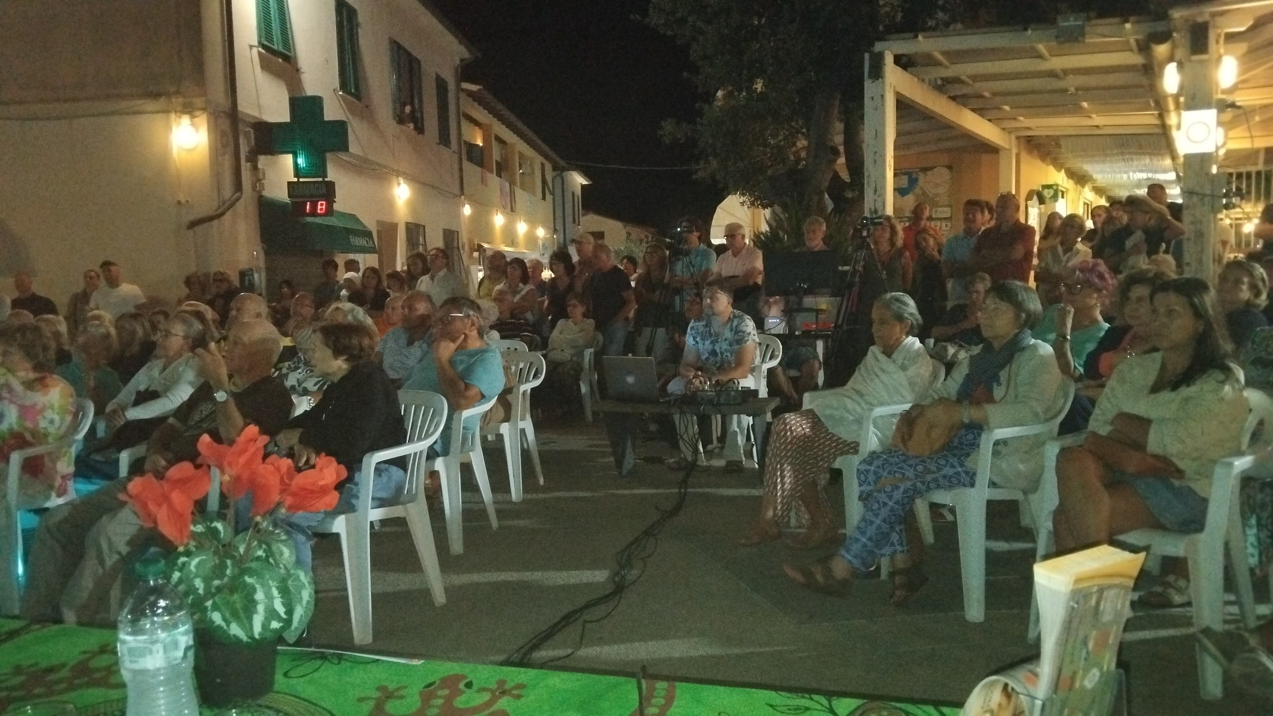 Le 80 sedute, messe a disposizione dall’Associazione Culturale Procchio Napoleonica, sono state occupate già dalle 21.00 obbligando almeno quaranta o cinquanta persone ad assistere al film in piedi ma letteralmente “incollati” a pavimento per l’interesse che la proiezione ha trasmesso a tutti.