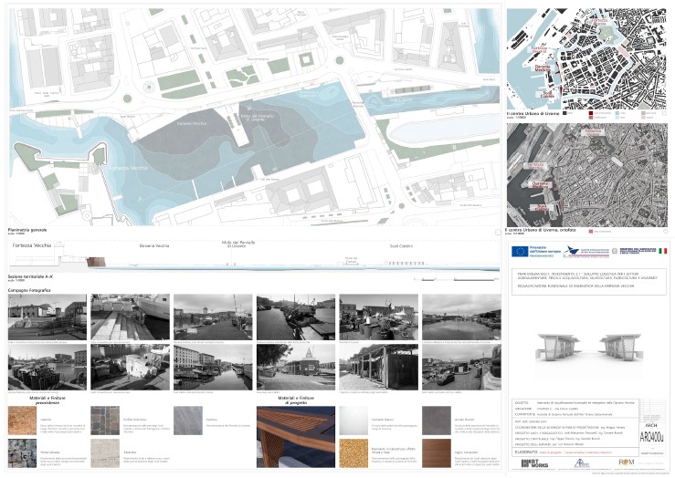 divenne un centro nevralgico per i traffici marittimi del Mediterraneo, attirando mercanti, artigiani e comunità straniere che contribuirono allo sviluppo economico e culturale della città. Nonostante l’elevato valore storico, architettonico e simbolico, la Darsena Medicea versa oggi in una condizione di sottoutilizzo, priva di una strategia di valorizzazione coerente con il suo potenziale. Il progetto di riqualificazione si propone di restituire dignità e centralità a quest’area, attraverso interventi che salvaguardino la sua identità storica, integrandola al contempo con nuove funzioni compatibili con il tessuto urbano e portuale contemporaneo. “Un non luogo scollegato dal resto della città – commentano i progettisti – che la nostra idea ha ridisegnato in maniera da restituirlo alla fruibilità sia dei cittadini che dei turisti. Sono stati ricreati dei percorsi, con un nuovo sistema di illuminazione a led, arredi e pensiline in materiale green, sormontate da pannelli fotovoltaici che serviranno a dare energia alla filiera della pesca che caratterizza l’area d’intervento. Verrà così ridata vita a una zona rimasta isolata dal resto della parte medicea della città di Livorno, eliminando quella separazione netta della parte più storica senza soluzione di continuità. All’interno del progetto è stata creata anche un’area ecologica, per la raccolta differenziata dei rifiuti generati dall’attività della pesca. Il tutto, gestendo la scala del progetto per non renderlo troppo impattante in relazione alla fortezza medicea antistante il porto. Ringraziamo tutti i collaboratori che hanno permesso la realizzazione del complesso progetto di ammodernamento dell’area: Arch. Federico Quaranta, ing. Lorenzo Ricci, ing Emma Bagnoli, geom. Roberta Ulivelli, geom. Giovanni Lumia, geom. Marco Corica”. Un esempio virtuoso, dunque, che dimostra che anche dall’isola d’Elba possa provenire una professionalità in grado di progettare e gestire il rinnovamento di strutture importanti, al passo con i tempi e nel pieno rispetto delle loro tradizioni storiche.