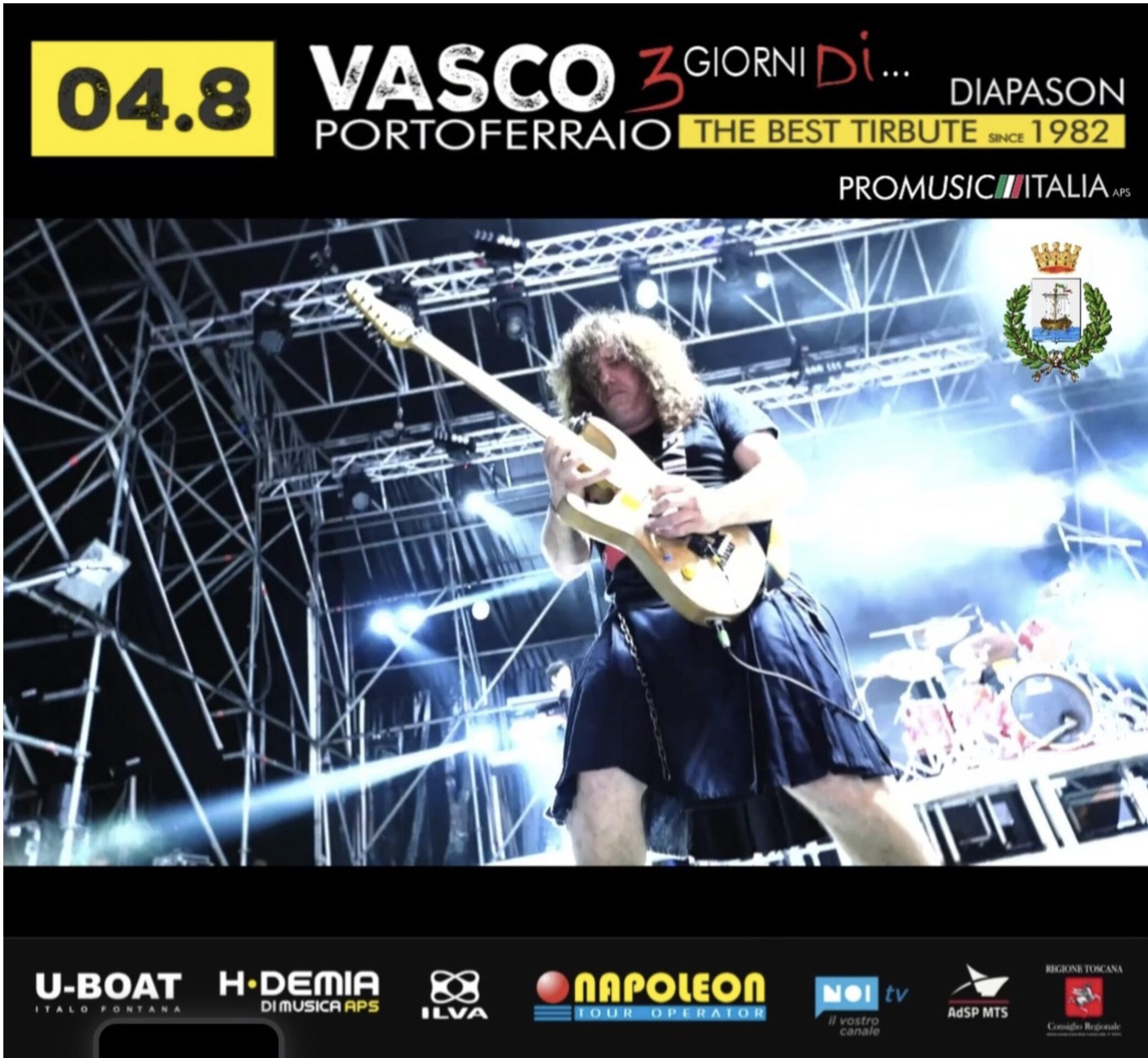 Una delle date piu attese. Stasera a Portoferraio La Tribute piu longeva di tutte dal 1982. Saliranno sul palco in piazza Cavour questa sera 4 agosto alle ore 21.45 i Diapason. Sarà la seconda data della “Tre giorni Di…” un festival nel festival degli Elba Music Awards 2025. Domani invece suonerà Renato Zero Top Tribute. Da non perdere.