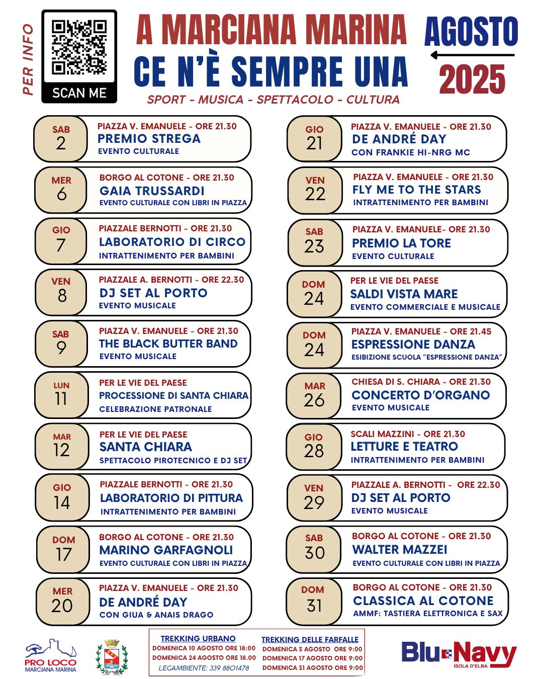 Il mese di agosto a Marciana Marina sarà ricco di appuntamenti imperdibili per residenti e visitatori,