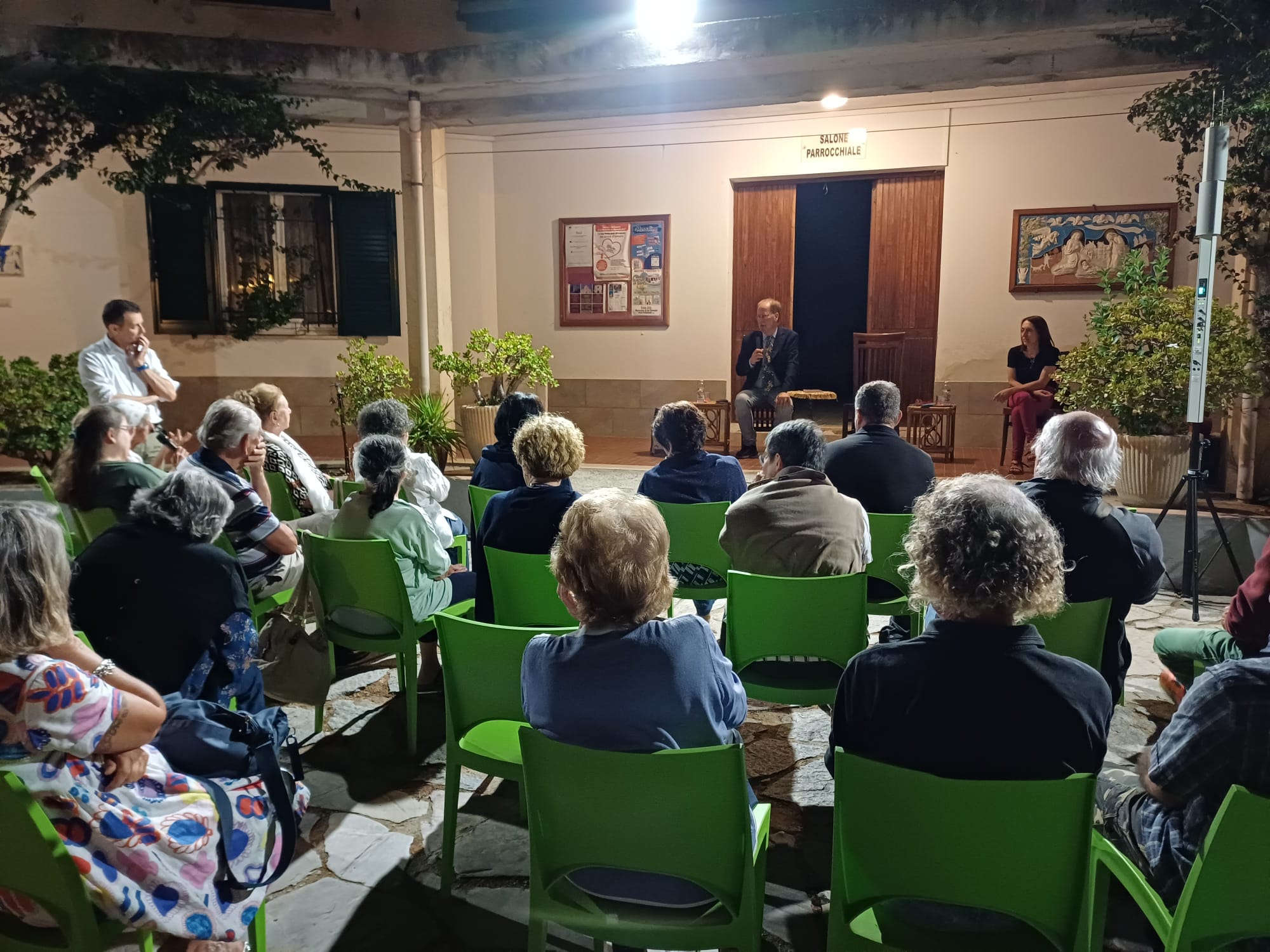 A Portoferraio, cortile della parrocchia San Giuseppe, l’incontro è iniziato con i saluti di don Kevin, parroco e delegato diocesano per l’ecumenismo. E’ proseguito con l’intervento introduttivo di Giorgio Retali e la relazione di Cignoni.