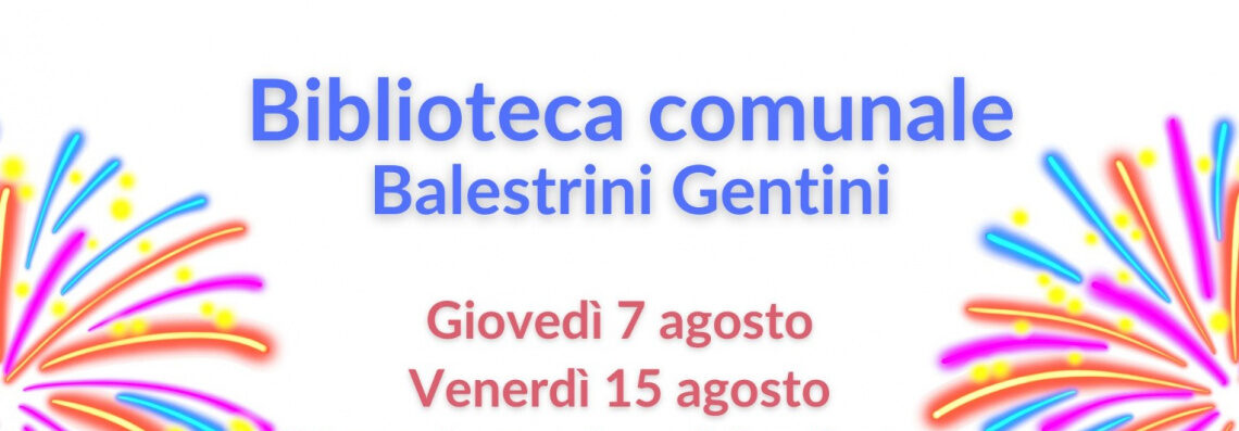 Vi comunichiamo che la biblioteca resterà chiusa nei giorni 7 e 15 agosto per le festività di San Gaetano, patrono di Marina di Campo, e di Ferragosto. Vi aspettiamo tutti gli altri giorni della settimana.