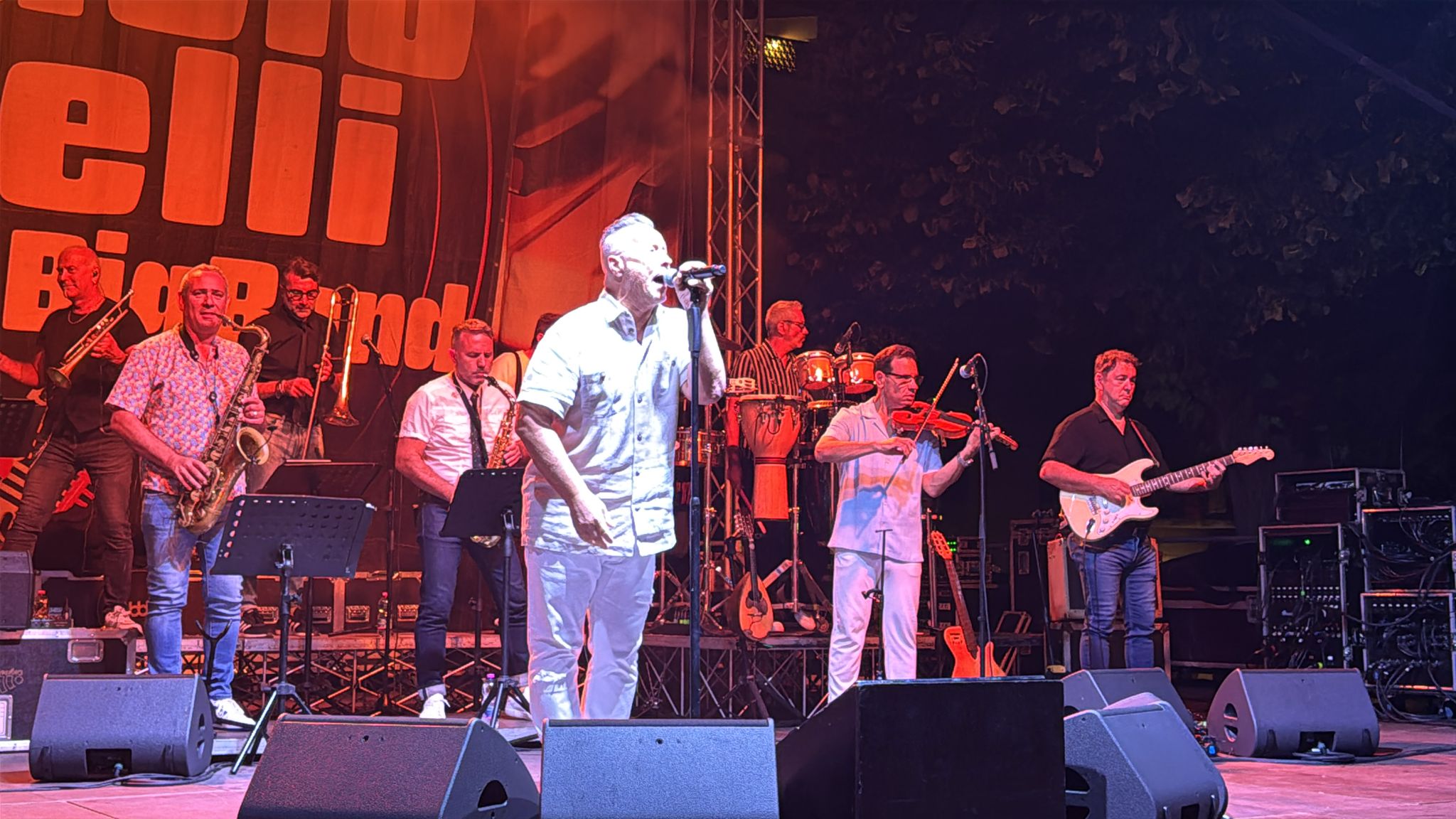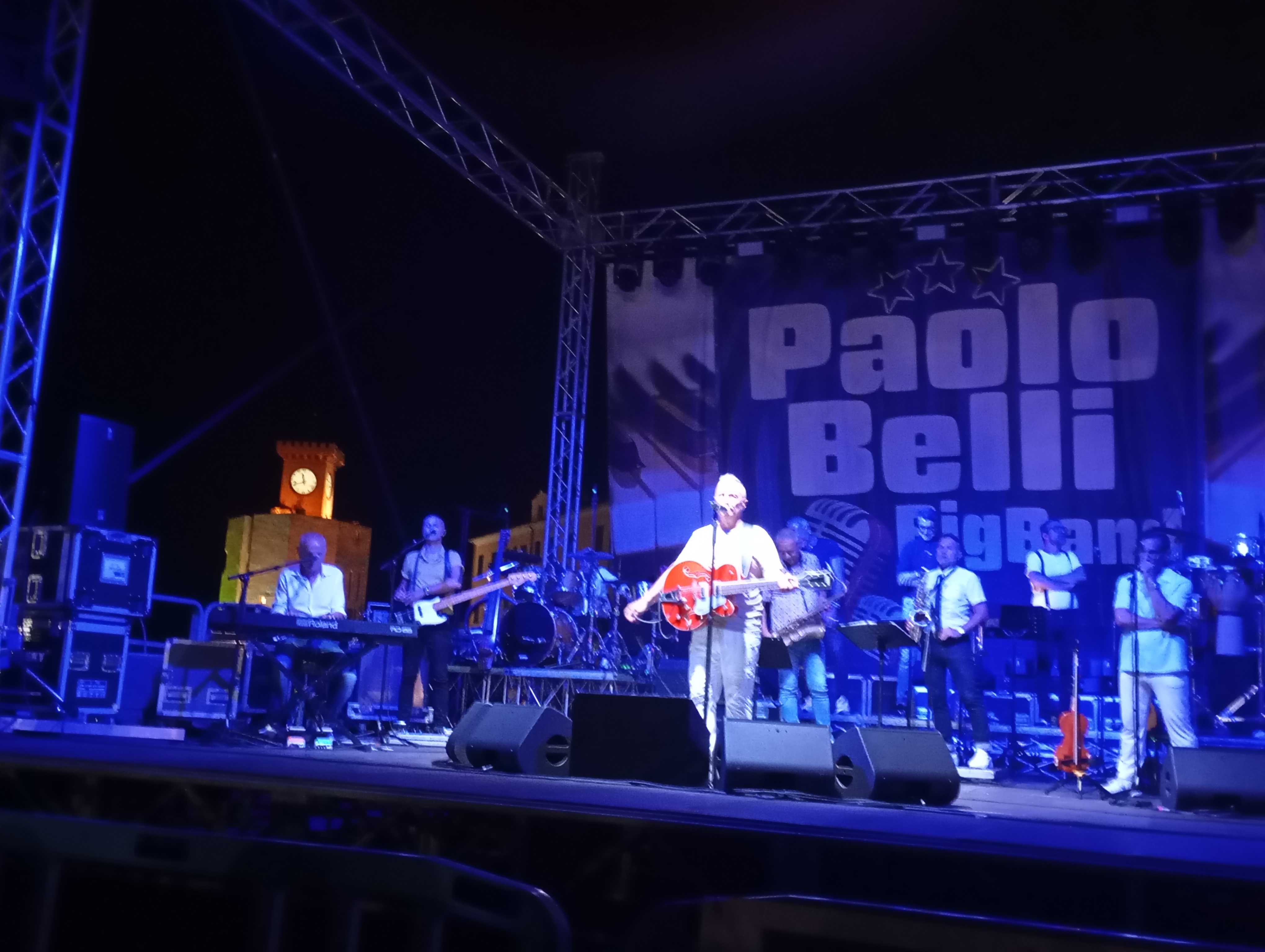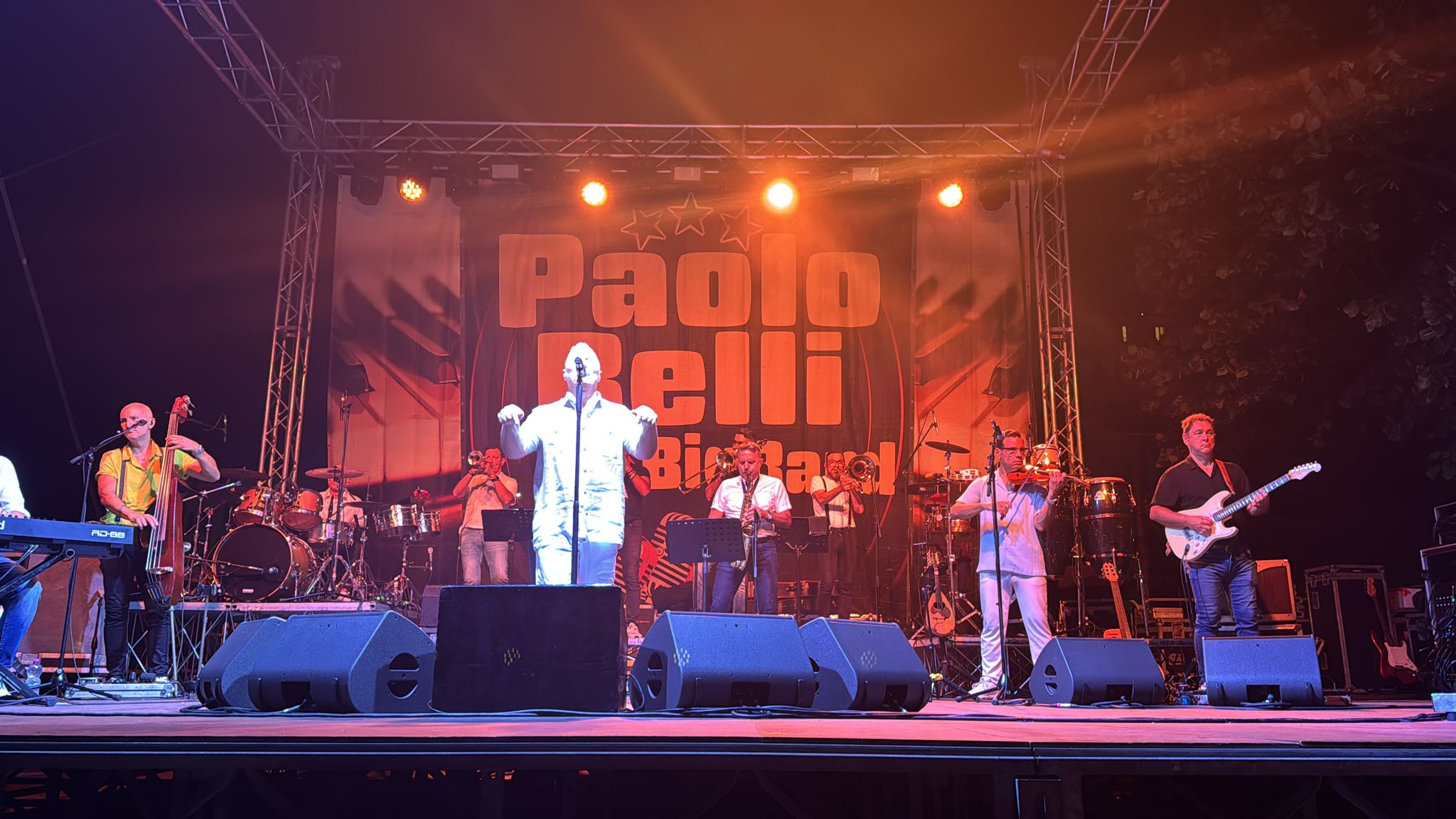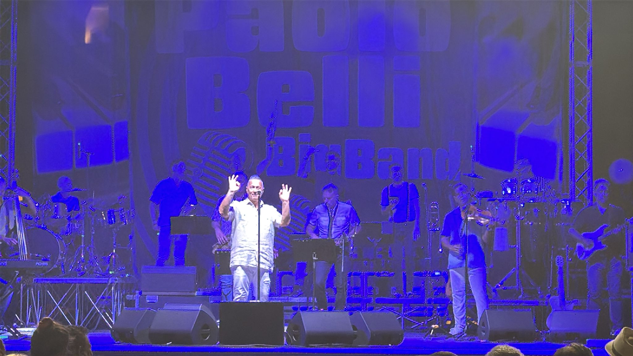 Musica, quella vera. Canzoni cantate a squarciagola da tutti. Swing, certo, con qualche tocco di jazz che non guasta mai, ma anche ritmo latino e tanta musica popolare italiana che ha fatto battere il cuore di Rio Marina mercoledì 6 agosto, in una calda sera d’estate. Questo è stato Paolo Belli (quello vero, eh) insieme alla sua super orchestra, una big band di 12 elementi, anzi, professori, come li chiama lui. Paolo Belli, uno di noi: questa è stata la sensazione a fine concerto, con il personaggio ormai nazional-popolare che a un certo punto è sceso in mezzo alla gente (guardate il video, ne vale la pena) per cantare con loro e salutare tutti, uno per uno. Un evento che l’Elba ricorderà, e che Rio Marina si è goduto tutto, per intero. L’evento dell’estate elbana.