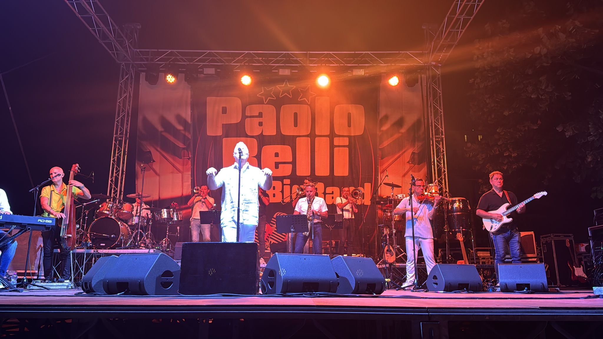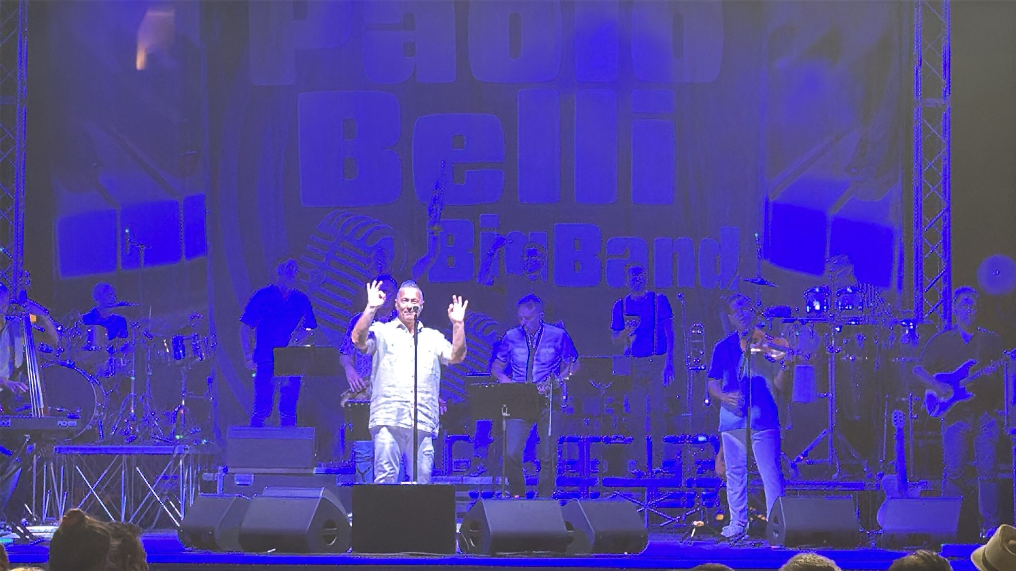 Il concerto di Paolo Belli & Big Band che si è tenuto ieri 6 agosto sugli spiazzi di Rio Marina è stato uno spettacolo unico nel suo genere, divertente, solare, dal ritmo coinvolgente, in un crescendo di note ed emozioni che hanno reso il pubblico protagonista e parte integrante dello spettacolo stesso. Musica, quella vera. Canzoni cantate a squarciagola da tutti. Swing, certo, con qualche tocco di jazz che non guasta mai, ma anche ritmo latino e tanta musica popolare italiana. Paolo Belli dal palco ha reso protagonisti anche i tantissimi spettatori accorsi al concerto che hanno applaudito, cantato, ballato tutti insieme rendendo gli spiazzi un luogo ancora più iconico. Insieme alla sua super orchestra, una big band di 12 elementi, anzi, professori, come li chiama lui ha coinvolto tutti in due ore di vero show. In scaletta i suoi più grandi successi, alternati ad alcuni omaggi ai maestri che hanno influenzato la sua carriera sin dall’inizio, come Carosone, Jannacci e Conte. Ma non solo musica, anche l’affetto che l’artista prova per l’isola d’Elba e che sottolinea ogni volta che gli è possibile. Un “elbano d’adozione” con una venerazione per questo scoglio che lo accoglie ogni volta con tanto affetto.