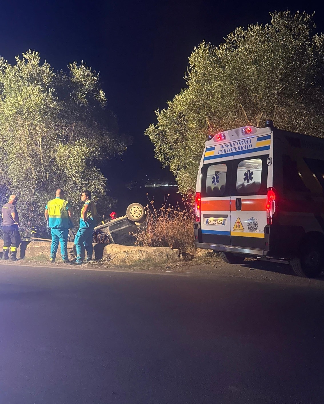 Un altra nottata di interventi, come segnala la Misericordia di Portoferraio dalla sua pagina facebook. . In particolare i volontari portoferraiesi sono intervenuti a seguito della segnalazione di una macchina rovesciata in un campo lungo la provinciale per Porto Azzurro; presenti sul posto una ambulanza della Misericordia, l’automedica, i Vigili del Fuoco e i Carabinieri. Fortunatamente non è stato necessario nessun tipo di intervento in quanto nessuno era presente sul luogo dell’incidente. Evidentemente gli occupanti dell’auto si sono allontanati spontaneamente, senza richiedere intervento medico.