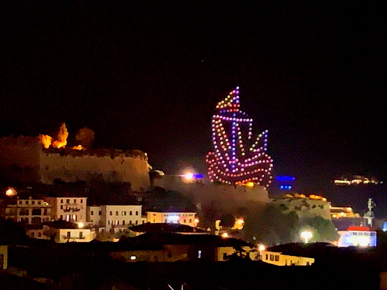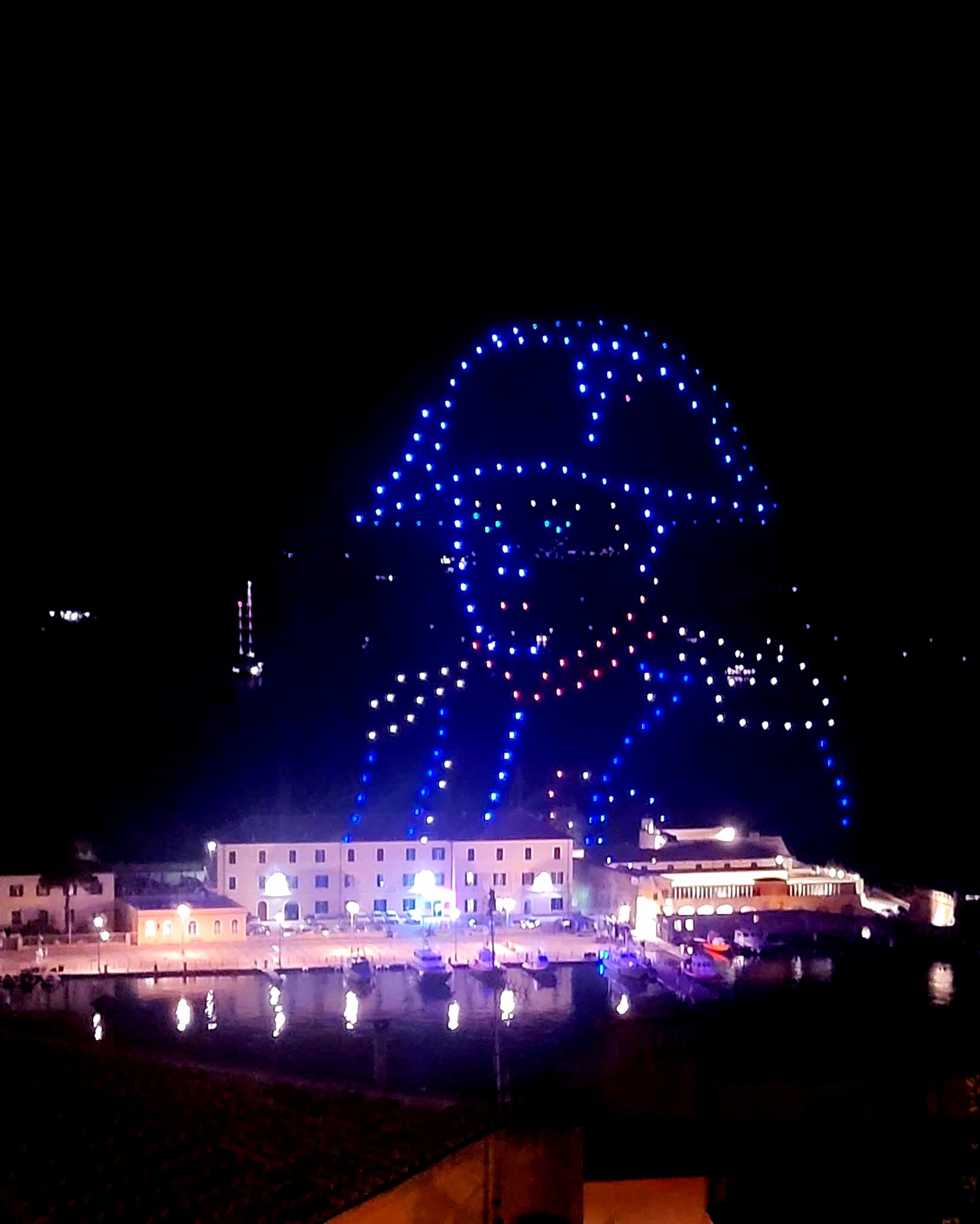 Ero alle boe con la mia barca, in attesa di poter assistere allo spettacolo dei droni. Purtroppo tutto deludente perché le immagini bidimensionali non erano leggibili dalla baia ma solo dal porto mediceo. Mi aspettavo immagini tridimensionali di alta qualità per essere apprezzate a 360 gradi da tutta la baia portuale come è sempre stato per i fuochi. Confido all’anno prossimo. Molti turisti artivsti in barca e nei porti adiacenti delusi.