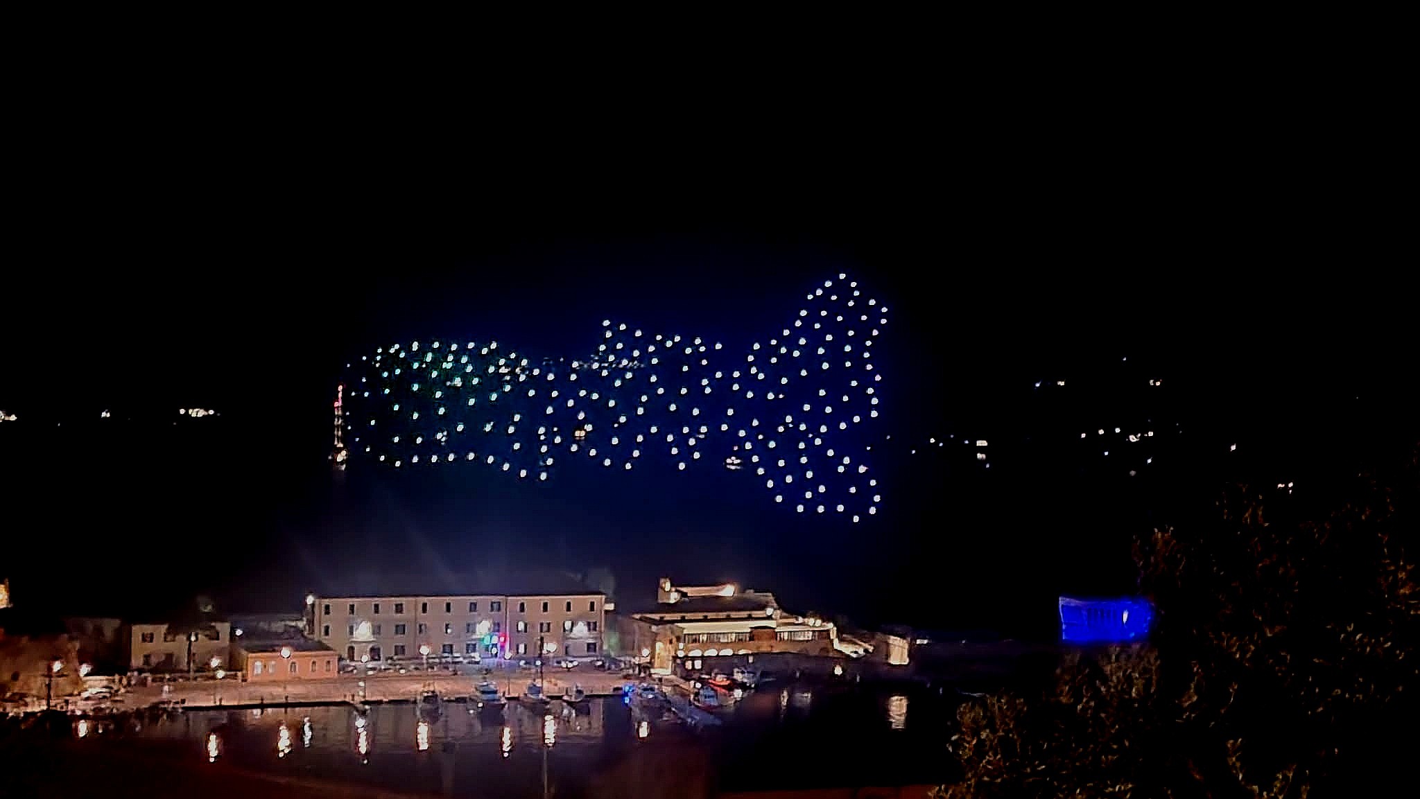 Una folla davvero mai vista a Portoferraio ha salutato la notte di Ferragosto per assistere allo spettacolo di drone art, l’evento più atteso dell’estate elbana per la scelta innovativa di proporre qualcosa di diverso dai consueti fuochi artificiali che entusiasmano ma poi spariscono in un attimo lasciando fumo, inquinamento atmosferico e acustico.