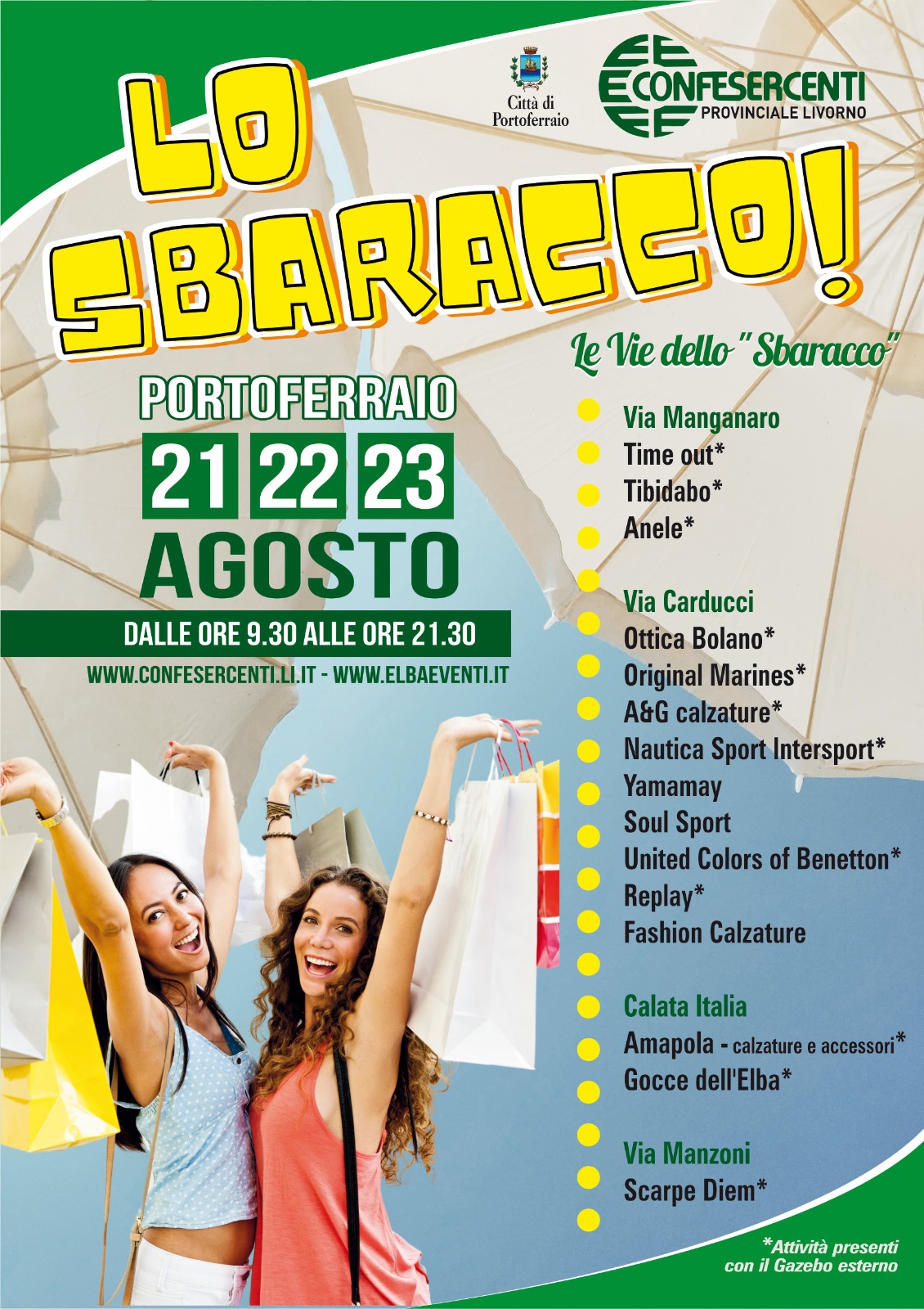 Portoferraio si prepara a vivere tre giorni di shopping con Lo Sbaracco d’Estate – Shopping Festival, in programma dal 21 al 23 agosto. Le vie Manganaro, Carducci, Manzoni e Calata Italia si trasformeranno in un vivace percorso commerciale all’aperto, con gazebo e negozi aperti dalle 09:30 alle 21:30. Tra i protagonisti dell’iniziativa tante attività locali, pronte ad accogliere residenti e turisti con offerte imperdibili. Un’occasione perfetta per sostenere il commercio del territorio e offrire a residenti e turisti un’esperienza di shopping vivace e coinvolgente per le vie della città.