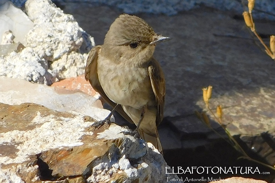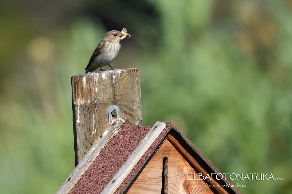 Nel pomeriggio di una di queste giornate estive passando in bicicletta per una delle vie periferiche di Portoferraio, attraversando un quartiere residenziale con palazzine e giardini, zona che anticamente ospitava le antiche saline di San Rocco, ho sentito uno schiocco familiare che mi ha fatto fermare e guardarmi intorno: era lui, il simpatico ma temibile pigliamosche (temibile per le sue prede) sulla ringhiera di un terrazzino, con una farfallina nel becco, che mi guardava prima di ingoiare lo sventurato insetto. Lo schiocco non era stato altro che il rumore del chiudersi rapido del becco per afferrare la preda. E’ stato come se mi dicesse: “Eccomi, presente!”
