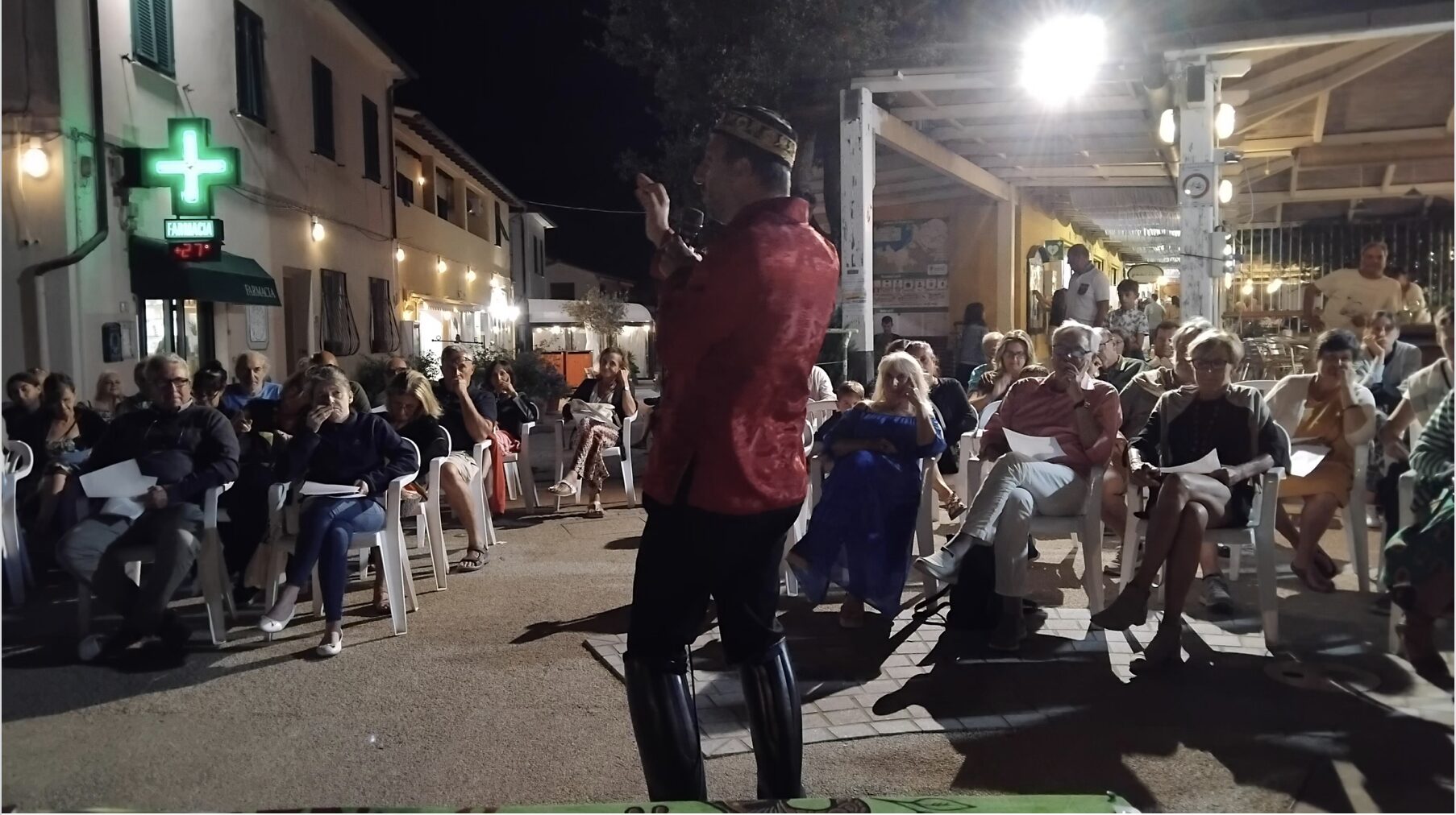 Con l’ausilio di alcuni rievocatori di Procchio Napoleonica, la Compagnia Quinta Prima ha inscenato la piece teatrale davanti ad un interessato e divertito pubblico che ha gremito la Piazzetta dei Delfini, decretando il tutto esaurito (56 partecipanti ed almeno ulteriori 30 ospiti) per gli spazi messi a disposizione.