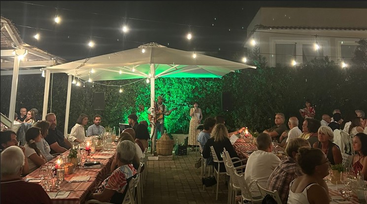 L’atmosfera è stata impreziosita da musiche popolari elbane cantate da Daniela Soria e Francesco Porro, che hanno accompagnato la cena con melodie che evocavano balli in piazza e feste di paese; un sottofondo musicale discreto ma avvolgente, in grado di rievocare ricordi nei residenti più anziani e di offrire ai turisti uno scorcio emozionante della cultura locale. Tra le canzoni che gli ospiti hanno maggiormente apprezzato ci sono state “e ce l’ho tremila lire”, “Insalata ricciola” e gli “stornelli della bella luna” che non soltanto rievocano una melodia passata, ma raccontano eventi di vita vissuta nell’Isola d’Elba di un tempo.