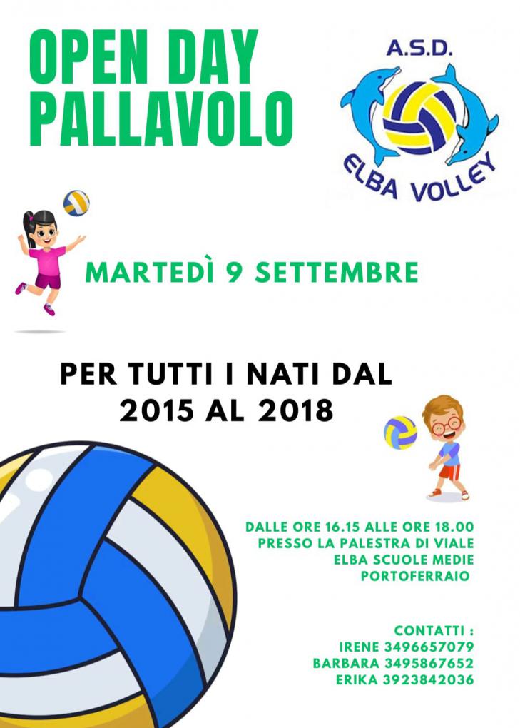 Martedì 9 settembre, la società Asd Elba Volley, ha organizzato dalle ore 16:15 alle ore 18,00 presso la Palestra di Viale Elba un “open day” gratuito per tutti i bambini\e che vorranno provare lo sport della pallavolo. Un occasione per far socializzare i bambini e fargli muovere i primi passi verso questo sport. Per maggiori informazioni, contattare: Irene 349 66 57 079 – Barbara 349 586 7652 Erika 392-384-2036