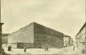 (Firenze vecchia 1899. Carcere delle Stinche e lavatoio, da una vecchia riproduzione presente a p. 441 del libro: Giuseppe Conti, Firenze vecchia. Storia, cronaca anedottica, costumi. 1799-1859. Firenze. Bemporad