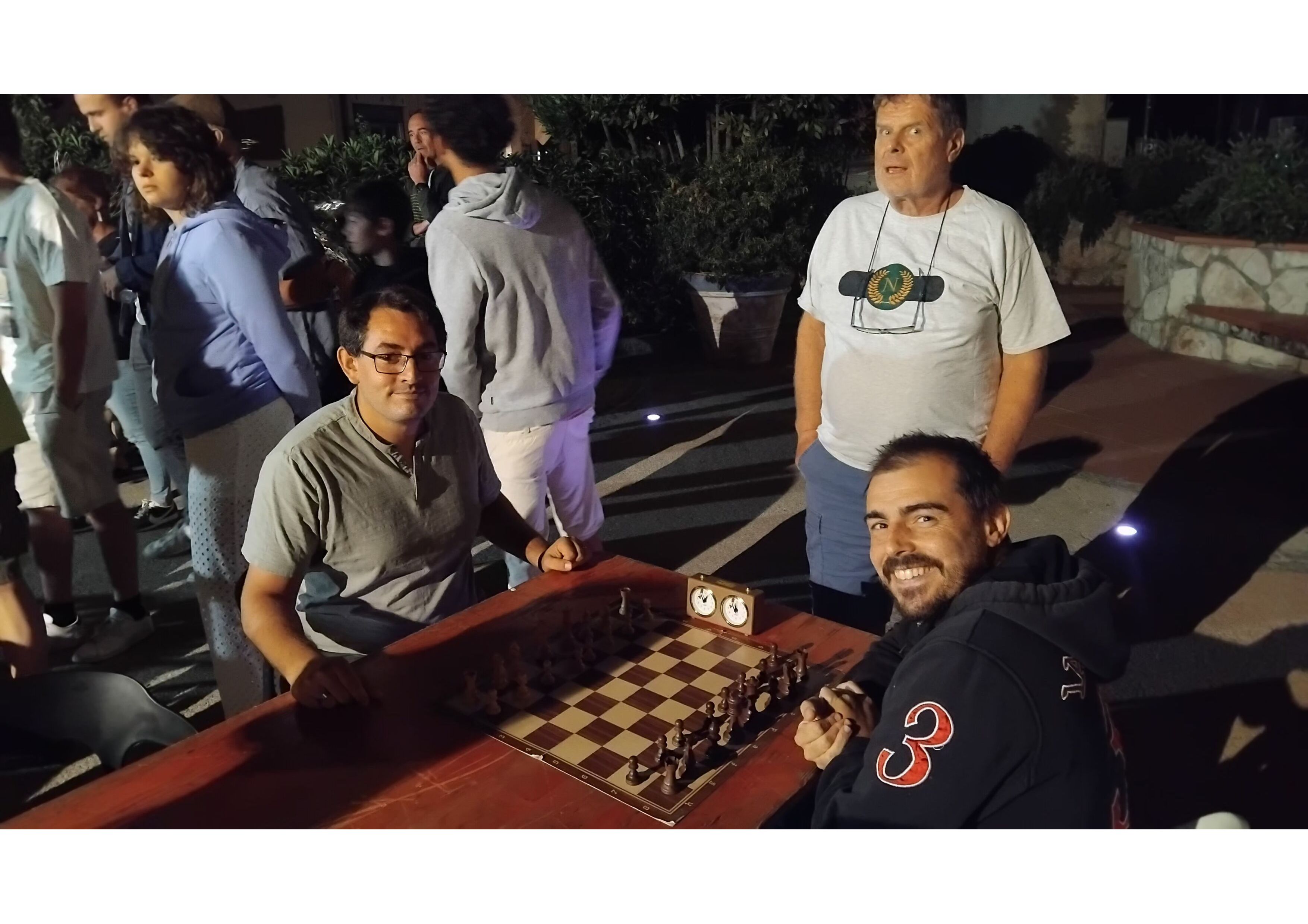 L’arbitro, Sergio Santinelli, ha dovuto attingere a tutta la sua proverbiale competenza e bravura per coordinare e supervisionare le partite a tempo (5 minuti) che sono state giocate a gironi per rendere la gara più veloce. Il risultato finale è giunto a tarda notte, con la vittoria del torneo da parte di Samuel, al secondo posto Gerald ed al terzo Laurin (vedi foto), cosa che rappresenta bene la compatta presenza di turisti stranieri al torneo, coordinato per Procchio Napoleonica da Marcello Provenzali.