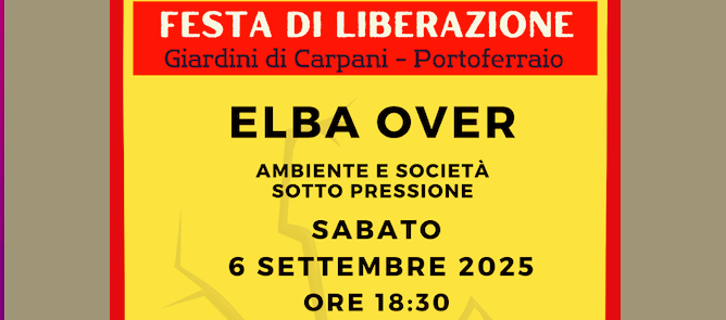 Ore 18:30: AREA DIBATTITI incontro sul tema “ELBA OVER – Ambiente e Società sotto pressione” al quale parteciperanno: Franco Cambi (Professore Ordinario Università di Siena), Marco Rinaldi (Alberi Maestri APS), Andrea Cirica (Filcams -CGIL), Costanza Lupi (Giovani Comunisti), Flavio Marzolla (PRC Elba); coordina l’incontro Benedetto Lupi PRC – Elba.