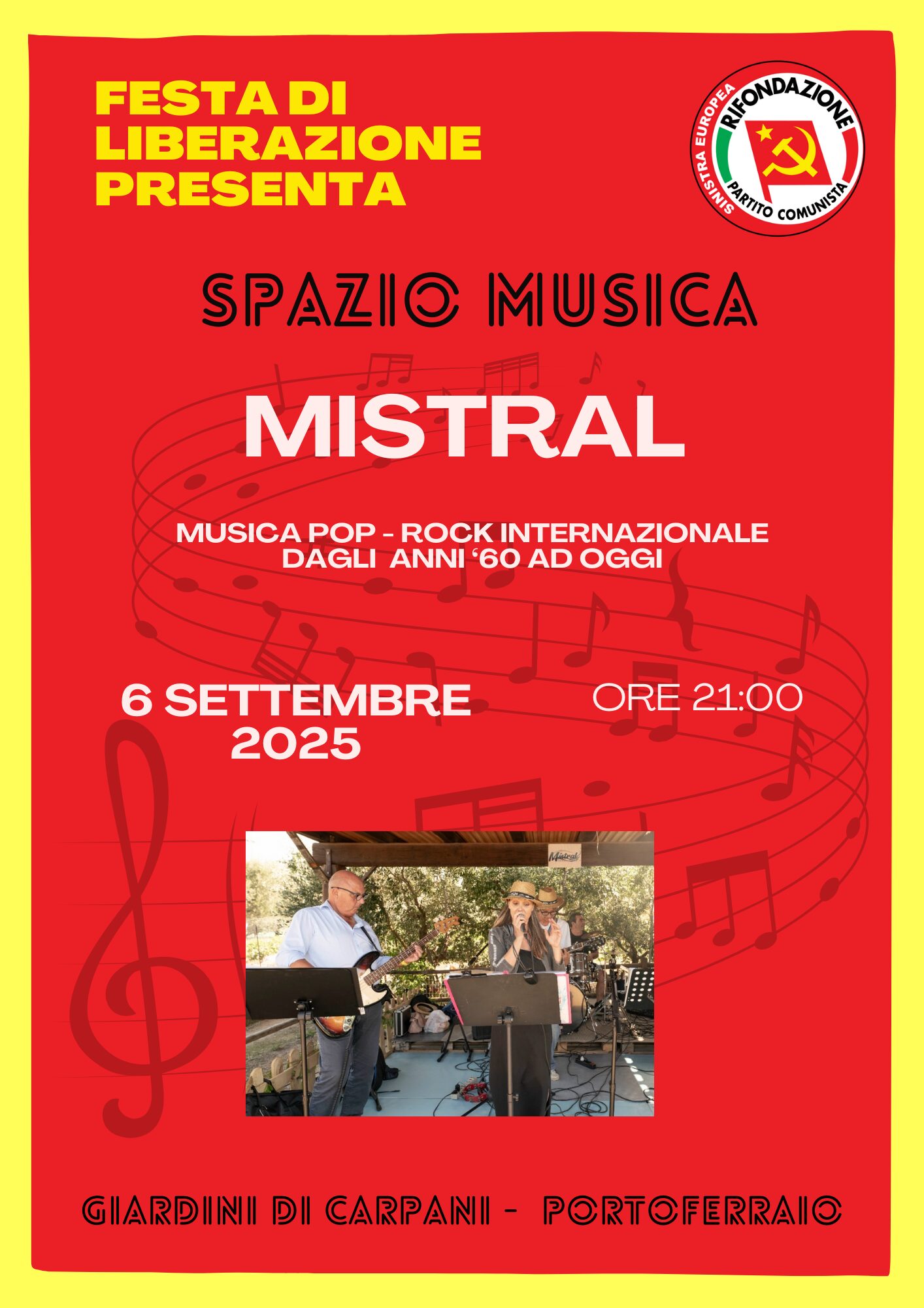 Ore 21:00: intrattenimento musicale con i MISTRAL, ch ci proporranno musica pop – rock internazionale dagli anni ‘60 ad oggi.