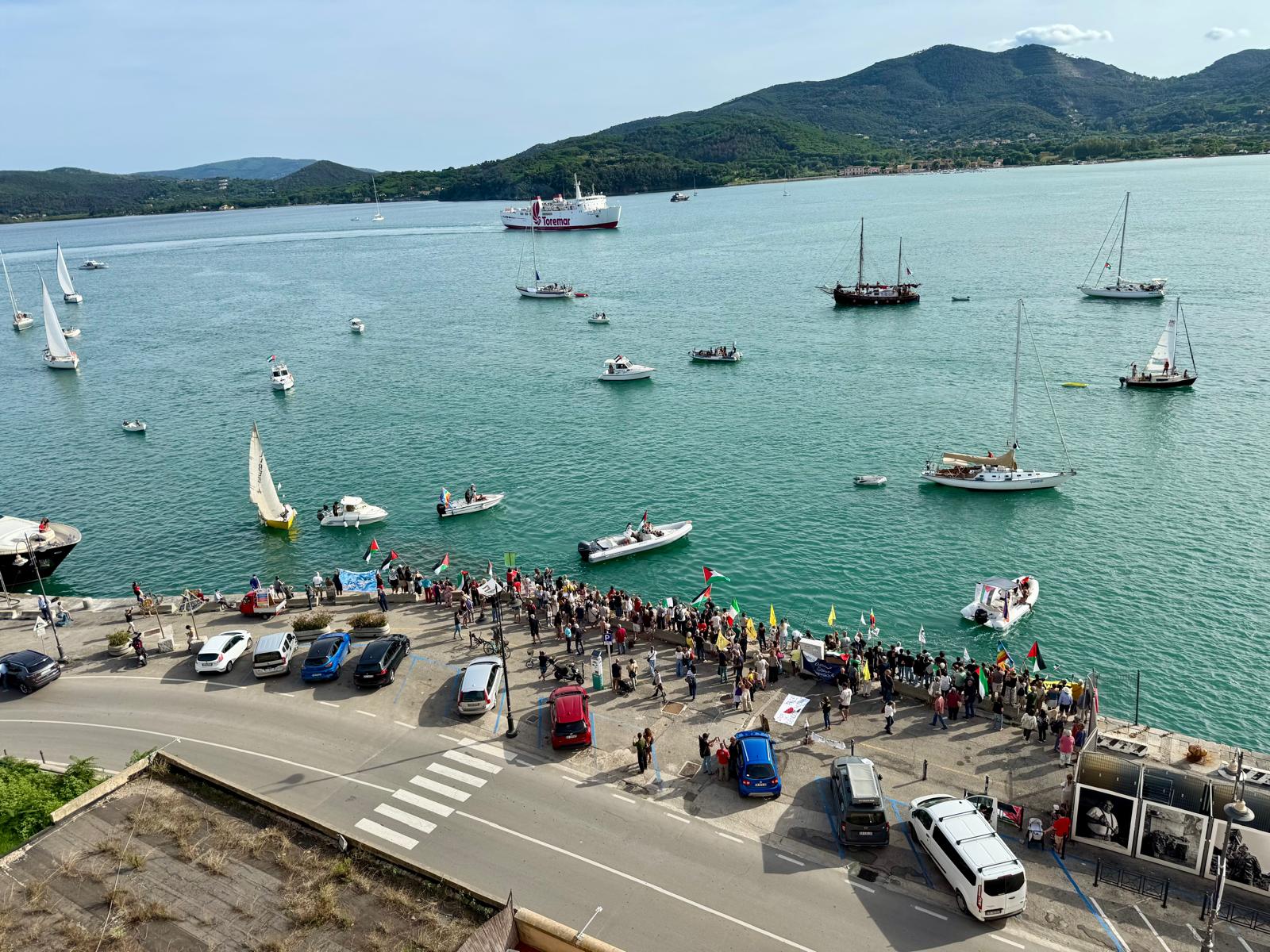 Nel pomeriggio di domenica 14 settembre 2025, si è svolta a Portoferraio la manifestazione a sostegno di F.lotta e Global Sumud Flotilla. L’iniziativa, organizzata da “Casa La Mammoletta – Fondazione Exodus isola d’Elba” e “Diversamente Marinai”, ha visto una buona partecipazione della popolazione elbana sia nel corteo di terra sia in quello in mare. Privati cittadini e associazioni hanno sfilato rumorosamente per strada, nel percorso tra l’Alto fondale e le Ghiaie, e in mare, dove una ventina di imbarcazioni si sono incontrate col gruppo di terra prima davanti all’Alto fondale e poi alle Ghiaie. Nel corso della manifestazione si sono alternati gli interventi dei rappresentanti delle Associazioni aderenti. Particolare commozione hanno suscitato la lettura dialogata di Francesca Ria e Gemma Messori, il canto palestinese del gruppo Koralé, la lettura della poesia “Se… ma…” (“Se io fossi Cristo…) composta da un partecipante, la testimonianza audiovideo di una bambina torinese di origine palestinese. I manifestanti hanno osservato un minuto di silenzio in memoria delle vittime del Mediterraneo e dei morti a Gaza, mentre le barche suonavano le trombe. Alle ore 18 circa la manifestazione è terminata.